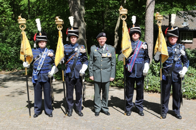 Onder de aanwezigen de Regemintscommandanten van de vier Regimenten de Kolonels Hans van Dalen, Kees Koek en Overstes Corstiaan de Haan en Jean Everaarts. RA’s Marcel Koster, Gerry Castelijns, Johan de Jongh, Fritz Zur Kleinsmiede en standaarddrager Richard van Laar.