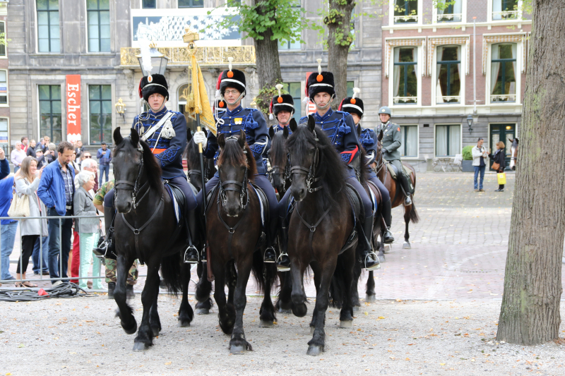 Een foto-impressie van het Cavalerie Ere Escorte tijdens de voorbereidingen op Prinsjesdag 15 t/m 18 september 2018 (beëdiging, strandoefening, generale repetitie, oefening op Duindigt en vertrek voor Prinsjesdag)
