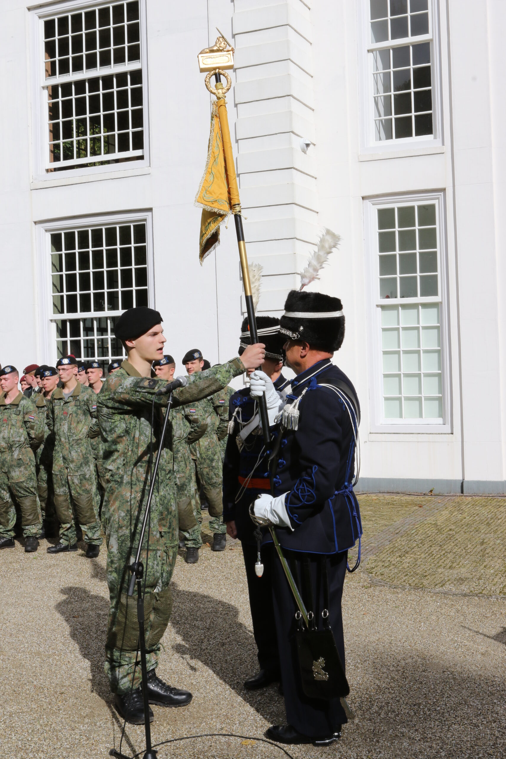 Onze Standaard werd door onze Regimentsadjudant Mike Helms voor de laatste keer gedragen voor een dergelijke ceremonie. Mike zal zijn functie later deze maand overdragen aan adjudant Johan de Jongh. RC kolonel Hans van Dalen dankte Mike voor zijn vele jaren van inzet als Standaarddrager van ons Regiment.