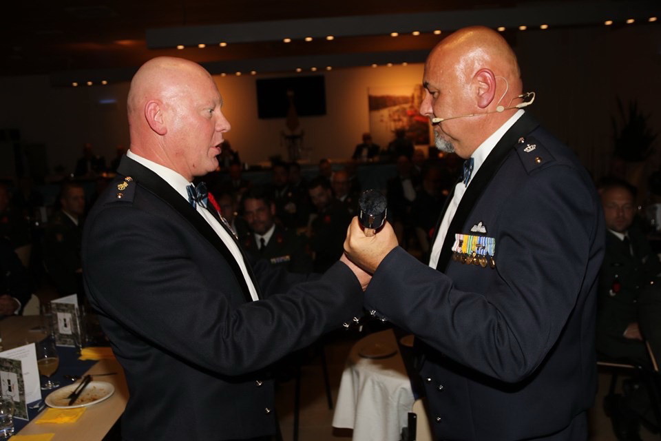 Het Regiment Huzaren van Boreel heeft een nieuwe Regimentsadjudant. Tijdens het onderofficiersdiner heeft onze zeer gewaardeerde Mike Helms zijn stok en functie overgedragen aan Johan de Jongh. Mike werd natuurlijk overladen met complimenten en cadeaus en namens ons Regiment heeft hij een gegraveerde sabel ontvangen. Van het onderofficierkorps RHB kreeg hij een tweede sabel. Geëmotioneerd bedankt Mike Helms iedereen voor alle steun die hij heeft mogen ontvangen tijdens zijn 5 1/2 jaar als RA. Hij droeg alle Regimentsleden vervolgens op om Johan de Jongh op dezelfde wijze te steunen. Txs Mike. Voor alles wat je gedaan hebt voor ons Regiment en voor wie je bent als mens.