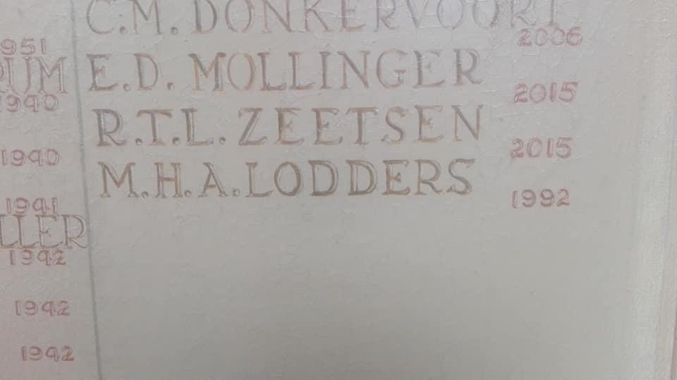 Maar eigenlijk meer omdat we, op 23 januari van dit jaar, met een kleine delegatie vanuit het Regiment Huzaren van Boreel aanwezig mochten zijn bij de bijschrijving van de Elnt Menno Lodders op de “Gedenktafel Officieren” op de KMA. Op deze gedenktafel: