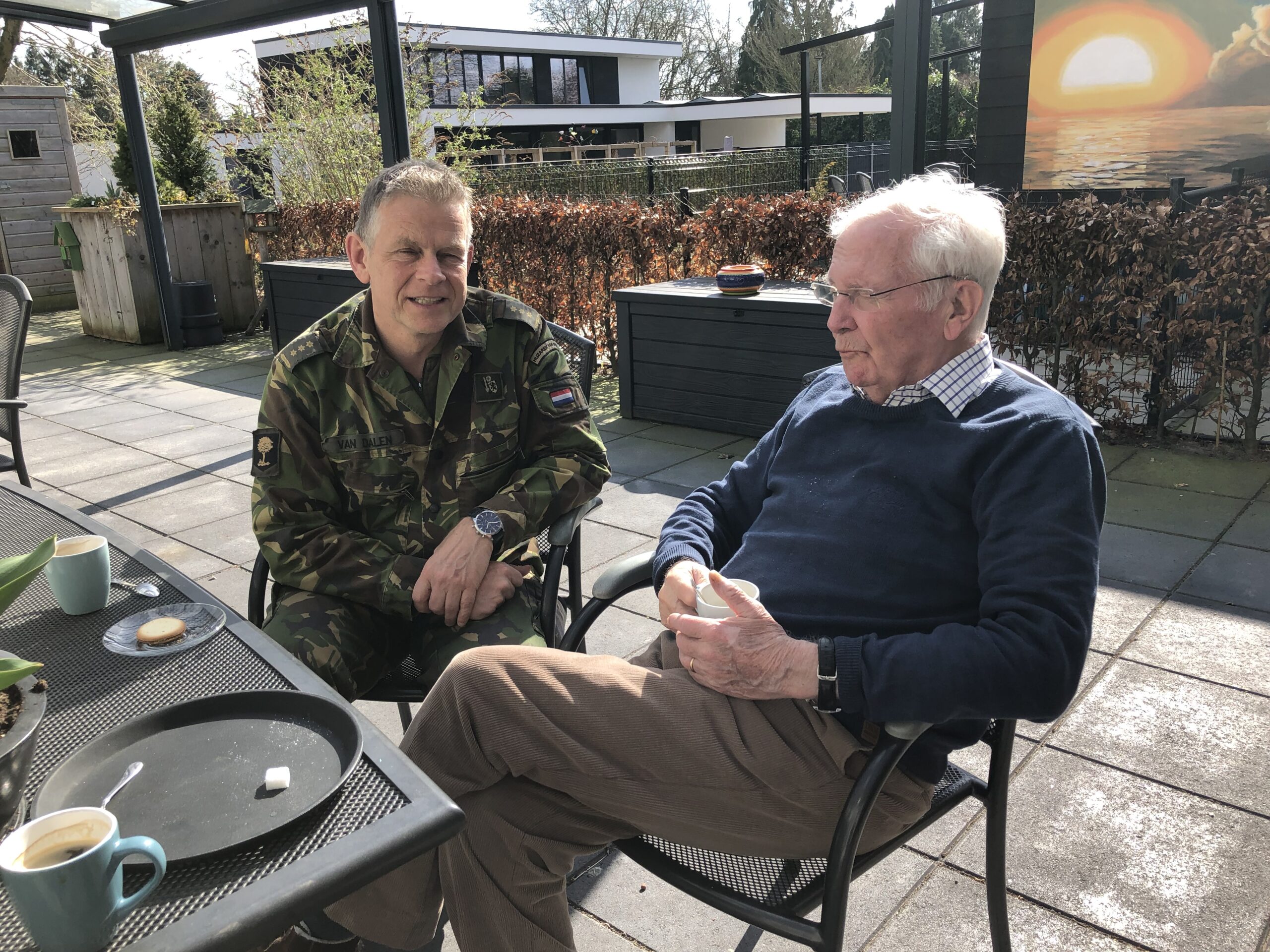 Onze RC kolonel van Dalen heeft op 18 maart een bezoek gebracht aan oud RC RHB Cees Kuypers. Zijn hoofd is niet meer zo goed, maar lichamelijk is hij nog een echte huzaar. Terwijl hij toch al 87 jaar is. Hij zit in een verzorgingstehuis. Zijn vrouw was er ook bij, zodat de bos bloemen goed terecht kwam. Cees begroette hem met: “dag kolonel”, een grote glimlach en vele ferme handdrukken. Samen hebben ze in één uur tijd wel zes keer het Boreel lied gezongen. Cees groet alle Regimentsleden van Boreel. Het gaat hem naar omstandigheden nog goed.