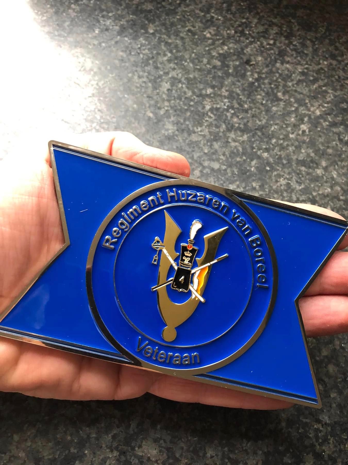 Kolonel van Dalen:”Vandaag had ik de enorme eer om bij mijn terugkeer van de CBMI missie als eerste de nieuwe verzwaarde Boreel Veteranencoin te mogen ontvangen. Uitgereikt door de Hoge Raad van Boreel die op het vliegveld klaar stond.”
