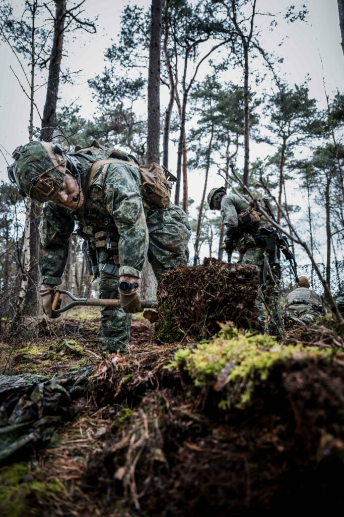 Bij de non-source operations opleiding van 104 Verkenningseskadron leren de leerlingen de kunst van het verkennen van routes rondom objecten en het in kaart brengen van nood-afbreukmogelijkheden. Tijden en routes richting een ‘safe haven‘ worden nauwkeurig genoteerd. Wanneer alle routes geanalyseerd zijn op bijvoorbeeld mogelijke hindernissen, dekkings- en mogelijkheden die te omtrekken, wordt een observatie post gebouwd en ingenomen. Vanuit hier kunnen de te observeren objecten en evt. vijand goed in de gaten gehouden worden. Ze doen dit zowel in een bosrijke- als een urban omgeving.
