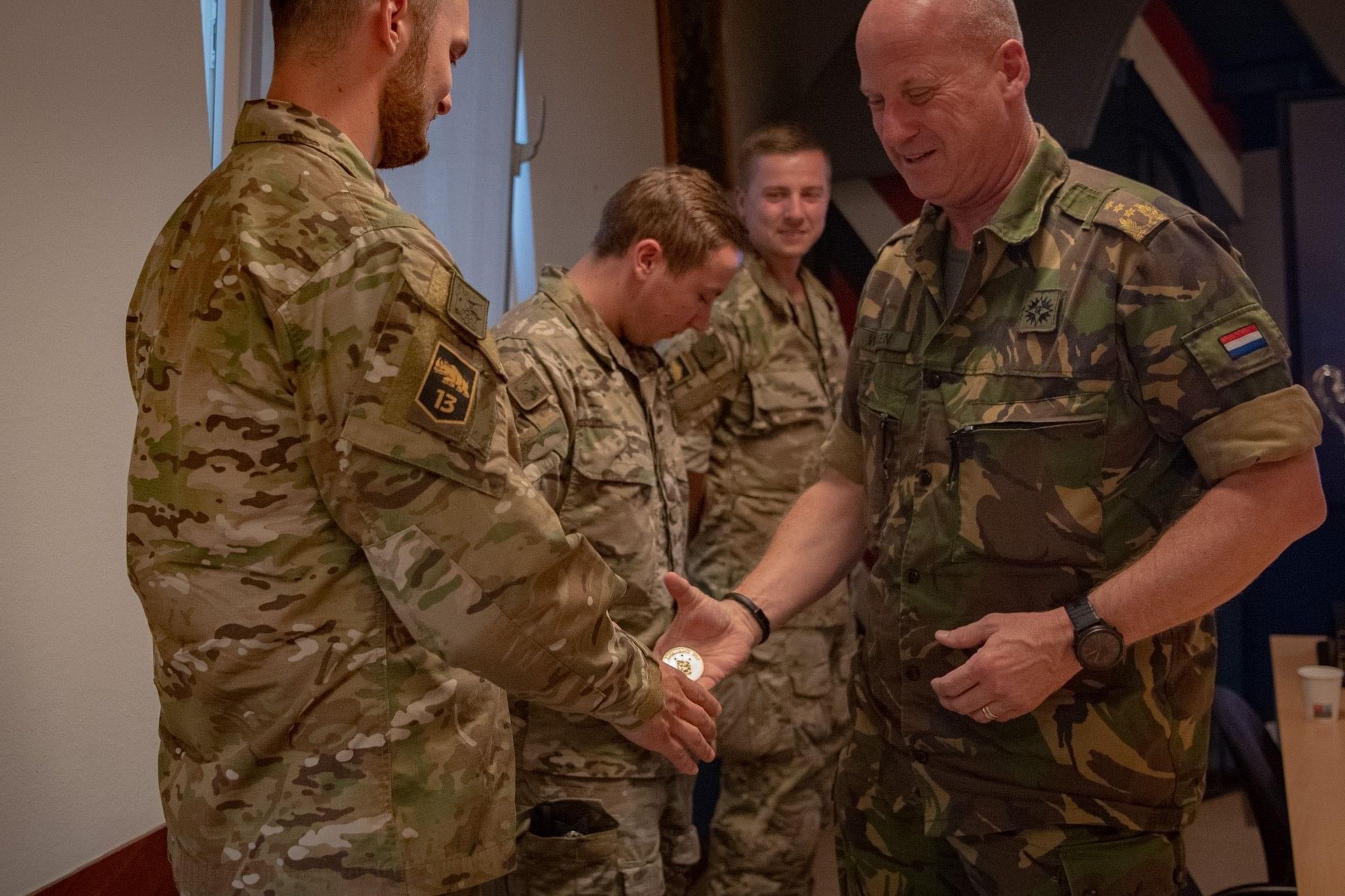 Na een presentatie over de verkenningswedstrijd waardeerde de C-LAS het deelnemende team met zijn Commanders Coin. “Wedstrijden als dit brengen het beste in vakmensen naar boven. Jullie mogen trots zijn dat jullie deze prestatie als vertegenwoordiging van Nederland hebben geleverd.”