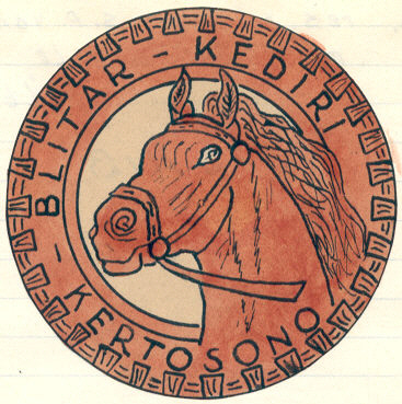Een combinatie van het paard, als symbool voor de oude cavalerie en het wiel, symbool voor de moderne vechtwagen. De drie namen op de band staan voor plaatsen op Oost-Java waar het eskdron verbleef