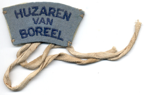 Het in 1946 vervaardigde embleem, aanvankelijk zonder tekst, werd gedragen door KL’ers bij de eskadrons pantserwagens en vechtwagens (lichte tanks) hoewel bij het 5e eskadron Pantserwagens in een afwijkende vorm dan hier afgebeeld. Per 1 februari 1947 werd de naam HUZAREN VAN BOREEL ingevoerd, de later aangemaakte emblemen zijn vervolgens met tekst HUZAREN en BOREEL voorzien.