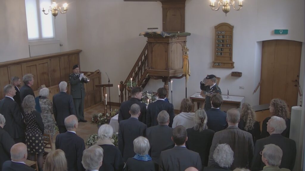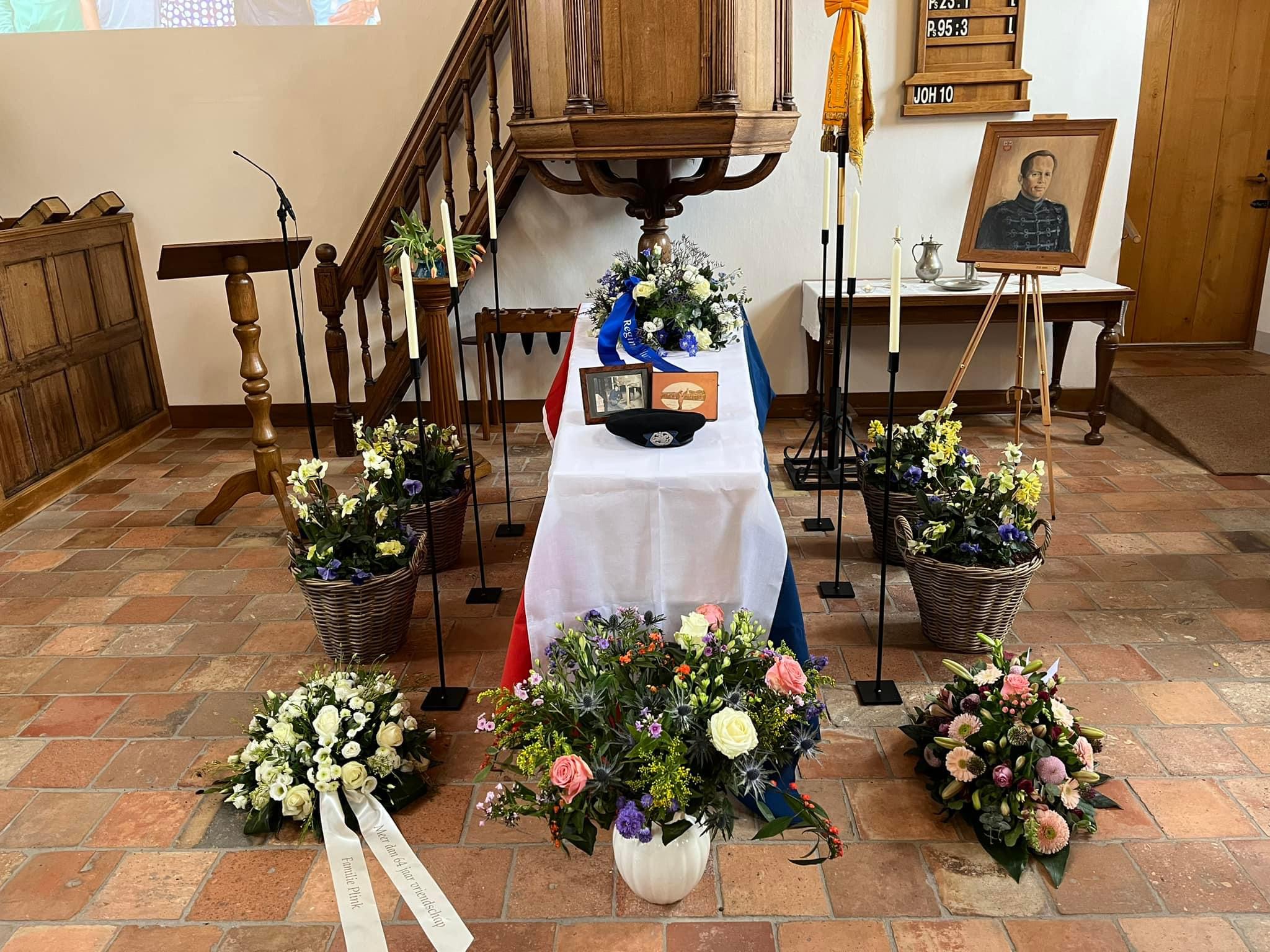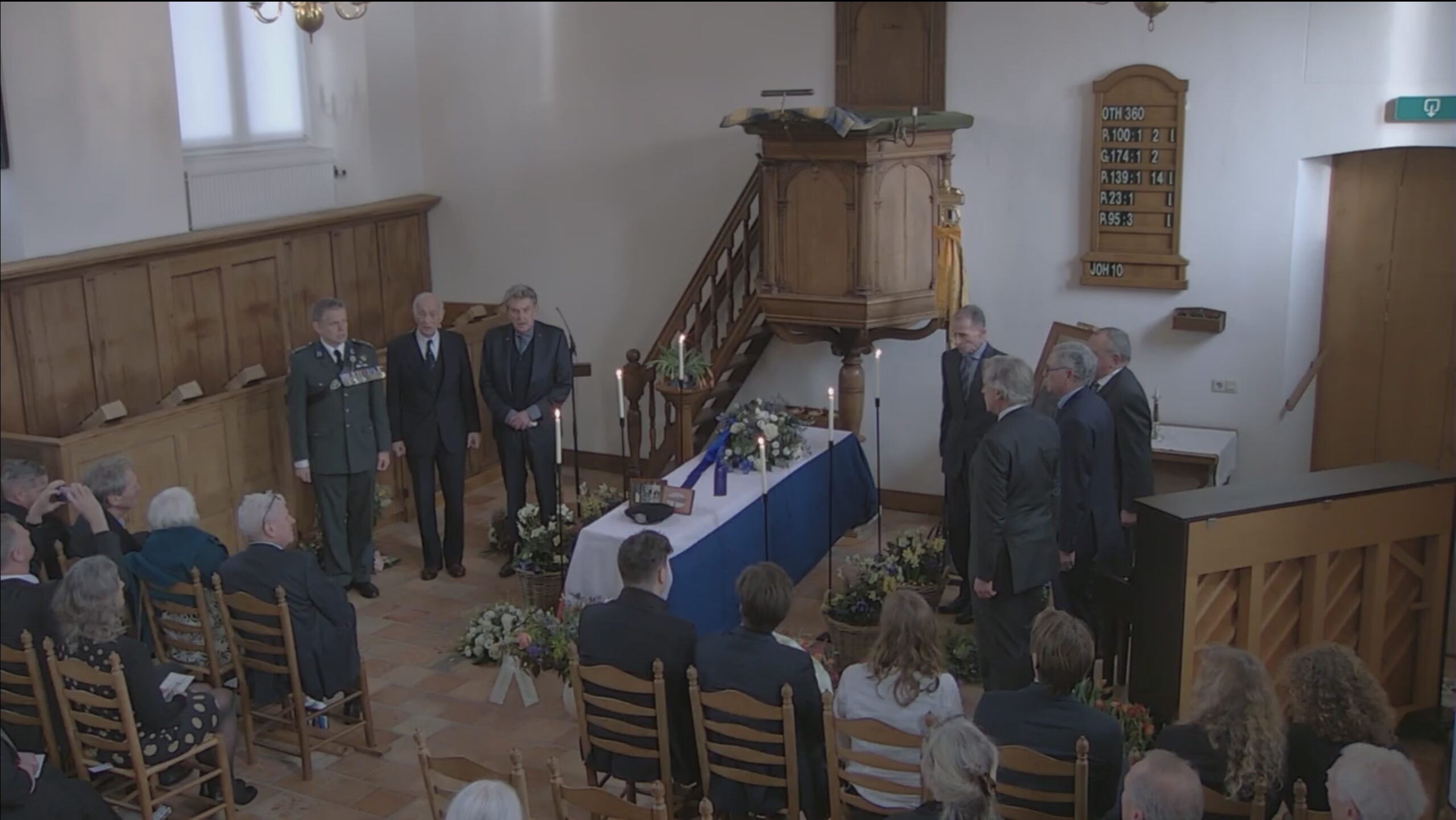 Tijdens de dienst, met een bescheiden militair tintje, kwamen vele mooie herinneringen in woord en beeld voorbij die menigmaal een lach bij de aanwezigen op hun gezicht bracht.