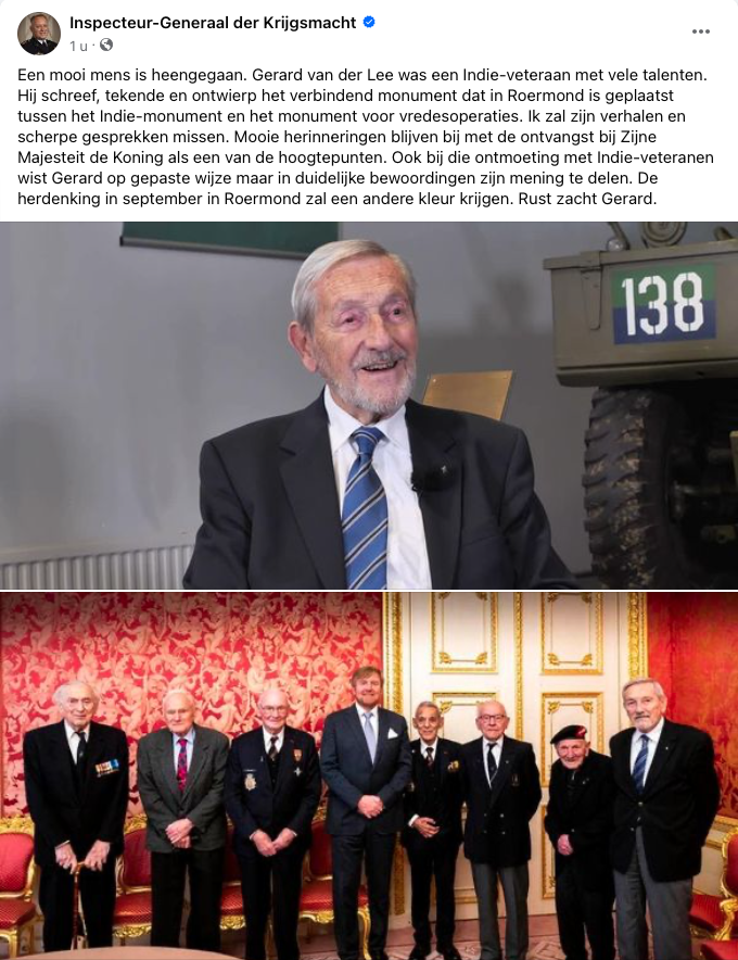 Ook o.a. de Inspecteur-Generaal Krijgsmacht, het VeteranenInstituut, Veteranenplatform en de Vrienden van Bronbeek besteden aandacht aan zijn overlijden. Gerard, een “veteraan voor altijd.”
