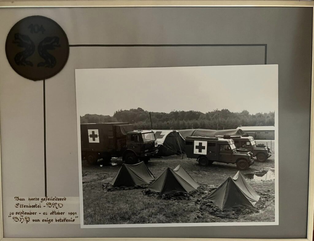 Ik kwam net terug van mijn 1e uitzending naar de Sinai, en werd uiteindelijk de PGA (pantser gevechts arts) van 104. We hadden veruit de grootste BHP van de kazerne (een BHP van enige betekenis).