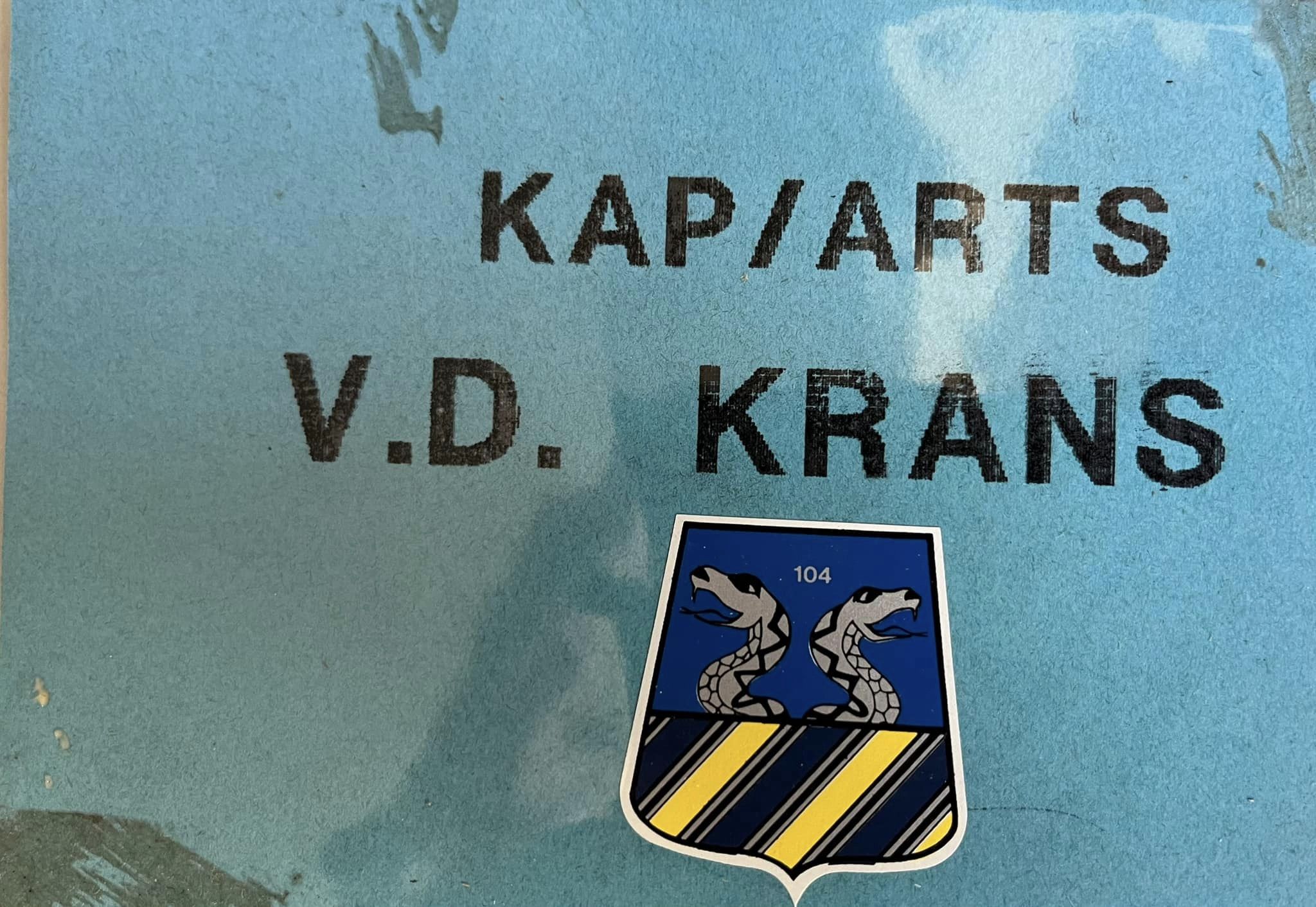 [Kolonel-arts drs. A.C. (Arie) van der Krans was bataljonsarts bij het Adderbataljon in Nunspeet. Na zijn tijd in Nunspeet heeft hij diverse uitzendingen gedraaid en is uiteindelijk na zijn tijd als Orthopedisch chirurg in het Centraal Militair Hospitaal in Utrecht met FLO gegaan. In 2019 ontving van der Krans de Koninklijke onderscheiding “Ridder in de Oranje van Oranje Nassau met de Zwaarden”. In zijn tekst grapt hij over “pantsergevechtsarts”, maar Arie was echt een arts met militair bloed. Dienstplichtigen die meenden even naar de dokter te kunnen gaan om onder een les hindernisbaan of marsen uit wilden komen kregen al eens de zo gewenste mutatie “Vrij van…” ; alleen bij het verlaten van de BHP lazen ze waarvan… “Vrij van parachutespringen voor 3 dagen!” Hilariteit bij het beroepskader dat met een volledig peloton aan de sportles of oefening kon beginnen.]