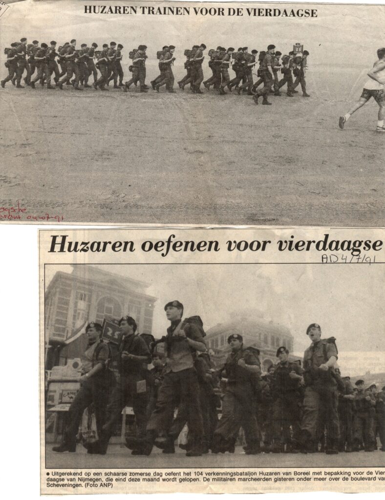 Natuurlijk als de kachel op schietserie (f*$#%@ing koud!) lekt gooi je de diesel niet weg, maar gooi je het in de kachtel om het af te fakkelen! Na een onderbreking van 2 maanden voor een uitzending naar Saudie-Arabie (Desert Storm) in een veldhospitaal bij het front kwam ik net op tijd terug voor de 4-daagse.