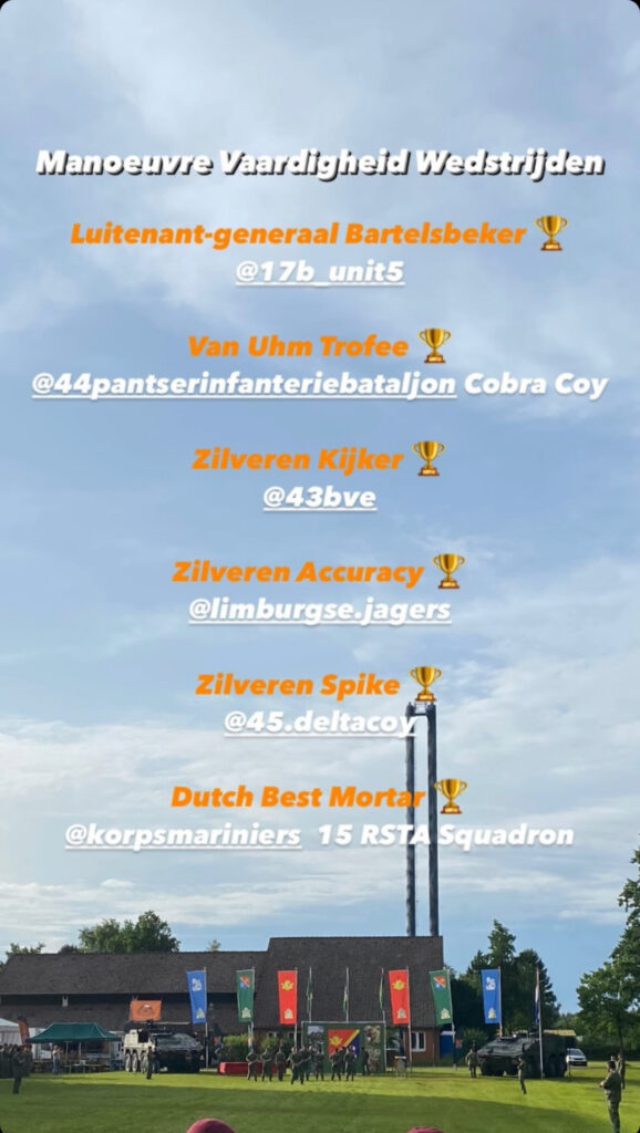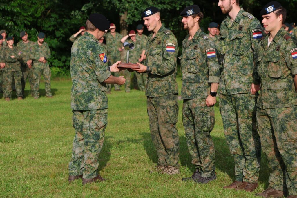 De spieren waren nog warm, het schone uniform aangetrokken en klaar voor de prijsuitreiking werd het team van 43 Brigade Verkenningseskadron naar voren geroepen om de Zilveren Kijker 2024 als winnaars op te komen halen.