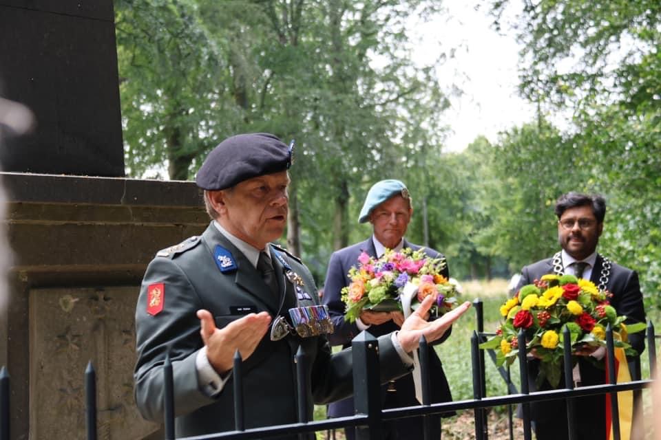 Vandaag was de herdenking van de in deze slag gevallen vaderlanders in bijzijn van de burgemeester van Heemstede, lokale veteranen en belangstellenden. Naast de burgemeester waren ook Indië veteraan Freek Maatman en de gisteren uit Engeland teruggekeerde RA speciale gasten.