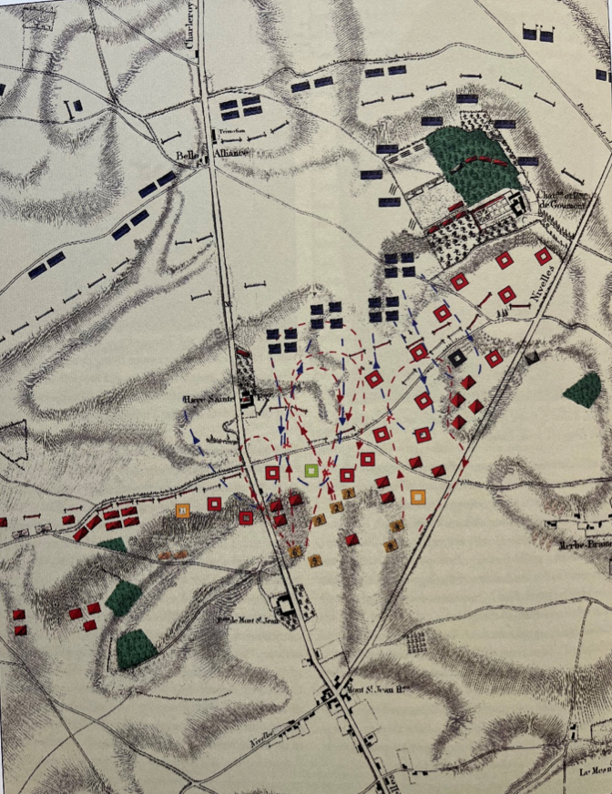 De Britse infanteriedivisie werd hierbij bijna weggevaagd, maar gelukkig is de Nederlandse generaal Chassé met zijn infanteriedivisie vanuit het gehucht Braine l’Alleud op eigen initiatief naar het centrum van de slag getrokken. Hij wist het dreigende gat in de verdediging net op tijd te dichten.