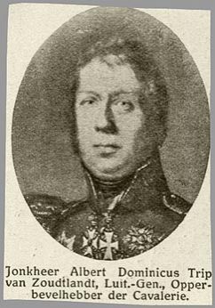 werd geattendeerd op de eigenmachtig uitgevoerde cavalerieaanval, stelde vast dat deze aanval te vroeg in de slag werd uitgevoerd, maar hij gaf tegelijkertijd bevel deze aanval met alle cavaleriemiddelen te ondersteunen. Hierop werd ook het 3e Franse cavaleriekorps en de zware cavaleriedivisie van de Garde opgedragen aan de charges deel te nemen. In totaal namen 67 eskadrons geformeerd in 20 regimenten deel; ruim 11.200 ruiters!Bij het zien van de voorbereiding voor deze charge verplaatste de generaal-majoor Trip zijn Nederlandse Zware Cavalerie Brigade terug vanaf de positie langs de verharde weg naar Charleroi naar zijn oude positie. Maar wel meer voorwaarts tot vlak achter de infanterie eenheden die zich in zogenoemde carrés opmaakten voor de naderende Franse cavalerie aanval. De twee lichte cavalerie brigades volgden ook, staken de verharde weg in galop naar het westen over en namen iets verder achter de zware cavalerie posities in. De brigade Van Merlen stond links achter de brigade van Trip , terwijl de brigade van Gigny zich rechts achter positioneerde. De Nederlandse cavalerie stond nu tussen de Engelse cavalerie. Allen stonden ze gedekt achter de heuveltop. Doordat door de eerste charge er geen zware Engelse cavalerie meer over was, vormde de Zware Cavalerie Brigade van Trip de enige zware cavalerie reserve. Op twee na waren nu alle geallieerde cavalerie regimenten in het midden (west van de verharde weg) opgesteld. Ongeveer 7000 ruiters, waarvan ongeveer 40% Nederlands en Belgisch. Generaal Trip in zijn gevechtsverslag: