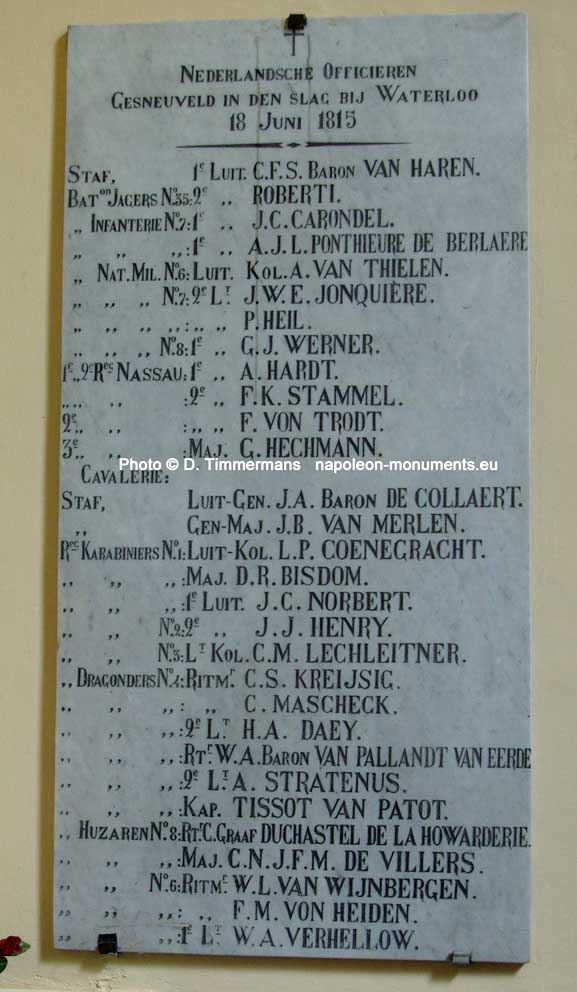 “While 5 or 6 squadrons of Chasseurs were nearing our position, we regrouped at 300 paces to the rear, on our right stood a regiment of Nassau. In that charge, the 1st regiment had 7 out of 8 officers wounded and lost major Bisdom.”