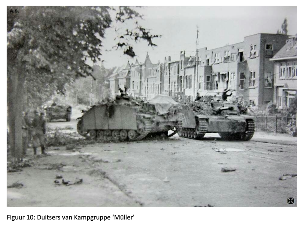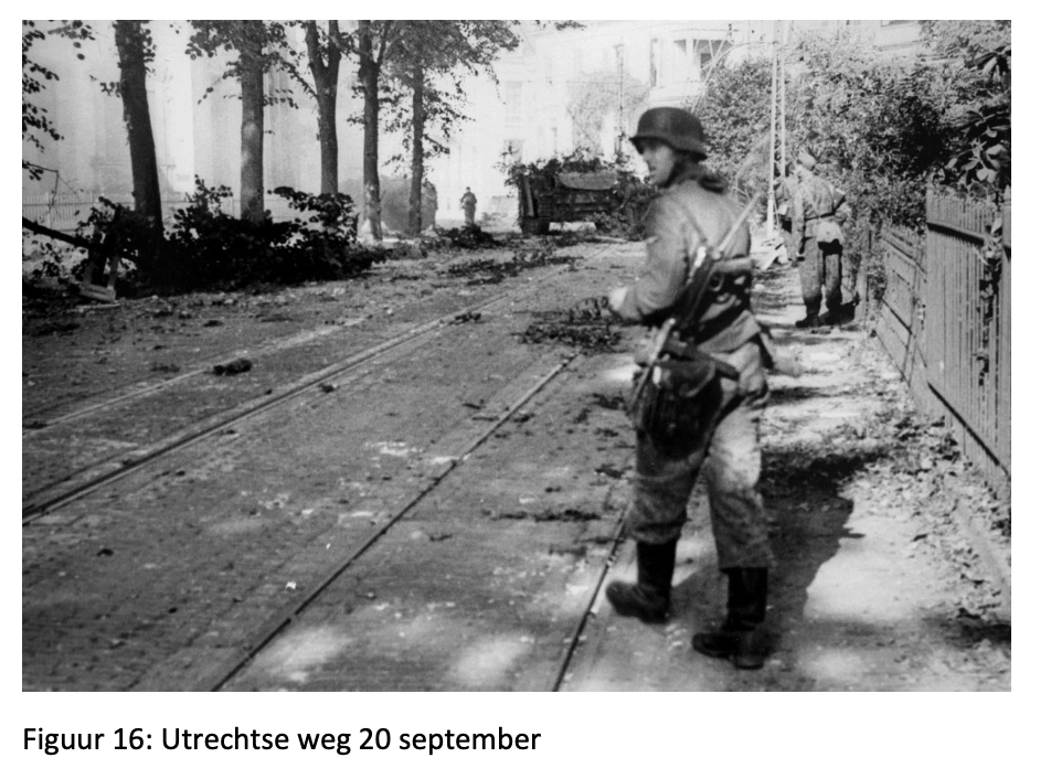 10 Hier zijn overigens de meningen over verdeeld. Weber zou pas veel later elders zijn ingezet. Meest waarschijnlijk is dat secties van Gräbner over de Amsterdamse (straat) weg met 1st Bn Para in gevecht zijn geraakt. Immers 1 ParaBn heeft 100 gevechtsverliezen! Die komen niet van 90 Luftwaffe soldaten met een K98, maar wel van 20mm en 37mm kanonnen op SdKfz verkenningsvoertuigen.
