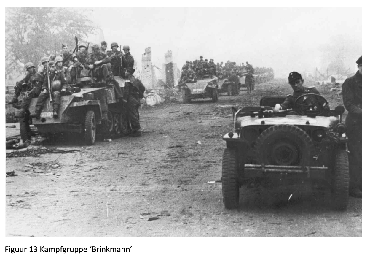 13 Het verkenningsbataljon van Gräbner beschikte nog over relatief veel pantservoertuigen omdat ze hun pantserwagens niet, zoals bevolen, aan de 10e SS Panzerdivision Frundsberg hadden afgestaan. Ze hadden ze simpelweg ontdaan van tracks en niet inzetbaar gemeld. Na alarmering werden de tracks snel om de loopwielen geplaatst en was de eenheid weer mobiel en gepantserd. Een deel van de pantserwagens was overigens al op het rangeerterrein 2km oost van Arnhem.