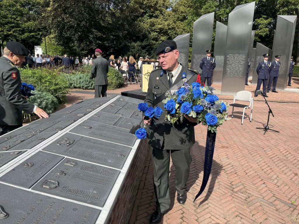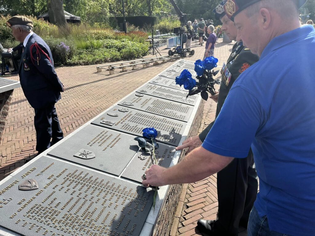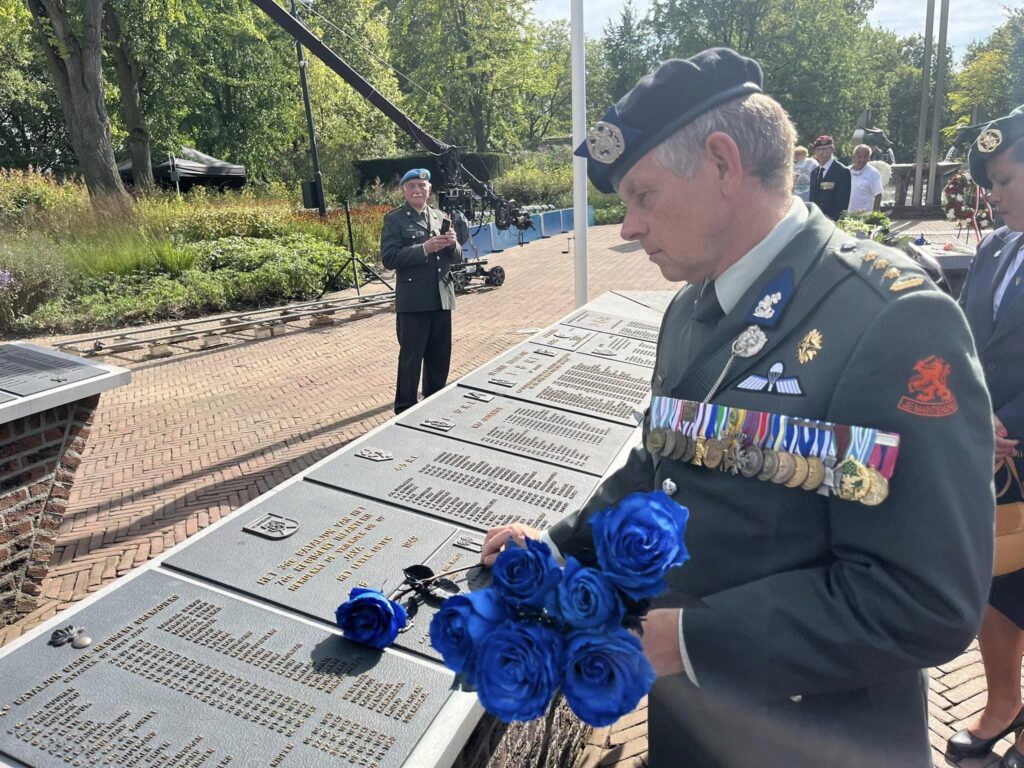 We buigen ons hoofd eerbied voor allen die daar het hoogste offer brachten. Verder nog een bloemstuk gelegd bij het verbindingsmonument wat ontworpen is door Gerard van der Lee, die ons dit jaar helaas is ontvallen.