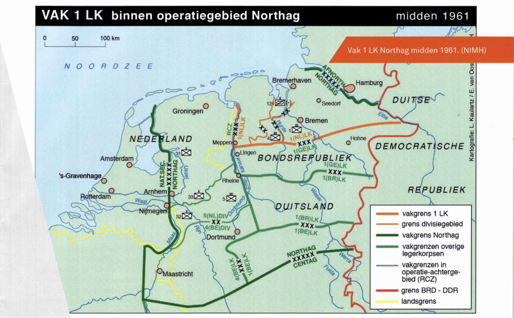 Lag het eerste verdedigingsconcept van de NAVO bij een aanval vanuit het Oosten bij de Rijn/lJssel-linie, dit alles veranderde toen in 1955 West-Duitsland tot de NAVO toe trad en zeker toen de Russen het jaar erop Hongarije binnenvielen. Nu vormden de rivieren de Weser en de Funda de hoofdverdedigingslijn. Voor Nederland betekende dit dat in het kader van de nieuwe NAVO-plannen de aandacht van de lJssel- naar de Weserlinie verschoof. ln 1957 was de sterkte van de NAVO dermate toegenomen dat werd besloten de verdediging verder naar het Oosten achter het Dortmund-Emskanaal te voeren. Het Legerplan 1958 ging er, mede op verzoek van de NAVO, van uit dat het 1e Leger Korps (1 LK), naast twee mobilisabele divisies, zou gaan bestaan uit twee parate divisies, te weten de 4e Divisie en de heropgerichte en vernieuwde 1e Divisie ‘7 December’. Deze nieuwe NAVO Forward Strategy hield in dat in geval van oorlog de beide divisies op de Noord-Duitse laagvlakte posities zouden moeten innemen.