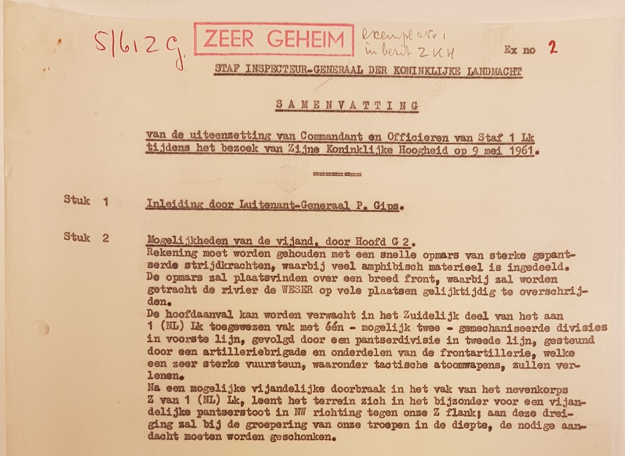Als gevolg van de ingeschatte ernst van het voortduren van de in augustus 1961 ontstane Berlijn-crisis besloot de Nederlandse regering 121 LtBrig te versterken en deze per oktober 1961 in Bergen-Hohne en Fallingbostel te stationeren. ln Hohne kwamen ruim 2.300 man in legering, van wie de verkenningsbataljons bijna 1.300 voor hun rekening namen. Ook de drie commandocompagnieën waren daar gelegerd. ln Fallingbostel lagen ruim 1.250 man, waaronder, ongeveer 1.000, genisten. Vanaf maart 1962 werden de detachementen van de geneeskundige troepen, de intendance en de technische dienst, bij elkaar ruim 450 man, ondergebracht in Celle. Dat er alle aanleiding voor versterking was blijkt uit het ‘Zeer Geheime Jaarverslag 1961‘ van de KL waarin wordt vermeld hoe het Warschau Pact in de periode augustus tot en met november van dat jaar zijn troepen in Oost-Duitsland aanzienlijk had versterkt. Niet alleen dat, maar ook bleek dat de trainingscyctus van de Sovjettroepen duidelijk afweek van die het jaar ervoor. Zo beoefenden tankregimenten op volle sterkte en uitgerust met snorkels bij voorbeeld het oversteken van rivieren. Verontrustend dus, daar de Noord-Duitse laagvlakte heel wat waterstromen kende. De versterking van 121 LtBrig bestond naast de eerder genoemde drie commandocompagnieën, de twee verkenningsbataljons en het (nu om de drie maanden roulerende) geniebataljon, onder meer uit een (eveneens om de drie maanden (roulerend) tankbataljon en de Groep Lichte Vliegtuigen, bestaande uit Piper Cubs en Hiller helikopters die de brigade ook ogen in de lucht gaf. Met detachementen van geneeskundige troepen, intendance en technische dienst was al met al, 121 LtBrig een geduchte eenheid van zo’n 3.500 man. ln wezen is er hier sprake van de eerste enhanced Forward Presence van de KL, zoals nu de NAVO-eenheden in Litouwen heten. 121 LtBrig was een zeer mobiele cavalerie-eenheid met de nadruk op verkenning en goede verbindingen maar die dankzij de relatieve tankzwaarheid ook nog geduchte klappen kon uitdelen.