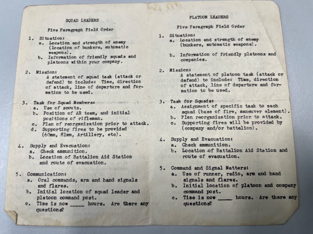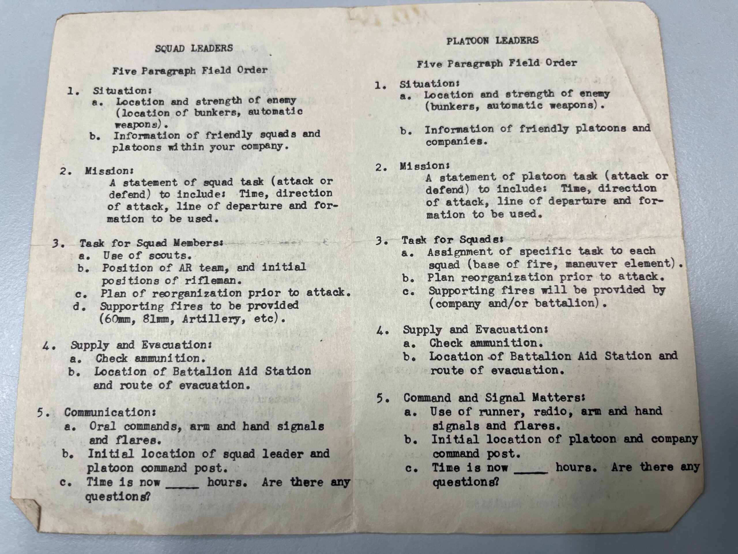 [4] Outguard is een taak (voor een kleine eenheid) om een beveiligingspost in te nemen in de directe nabijheid van de eigen pelotons outpost.