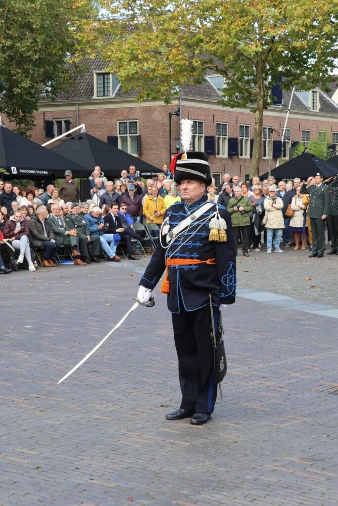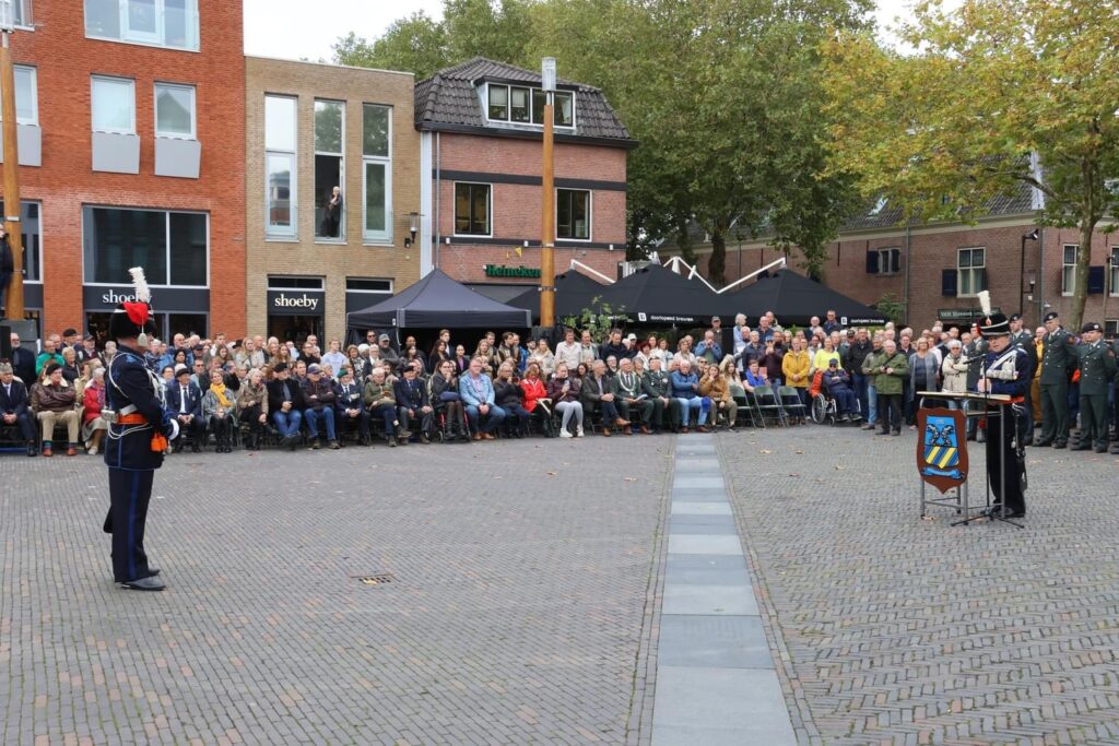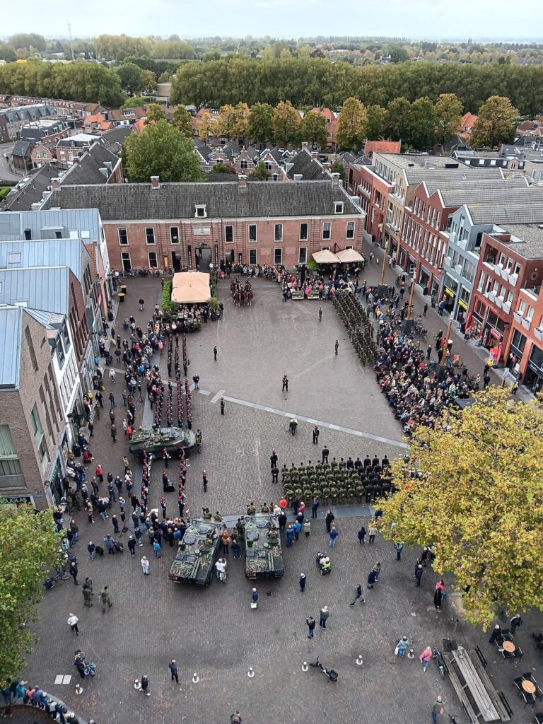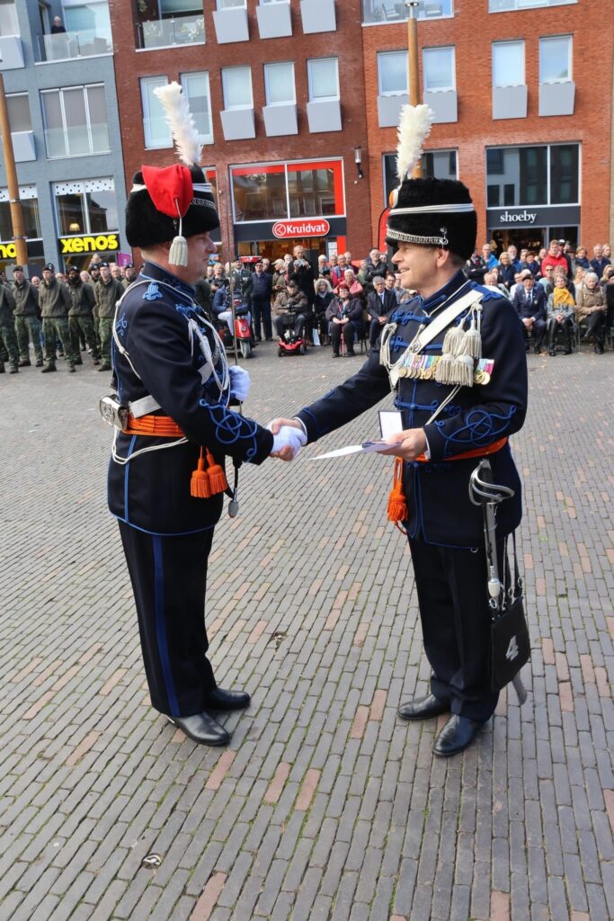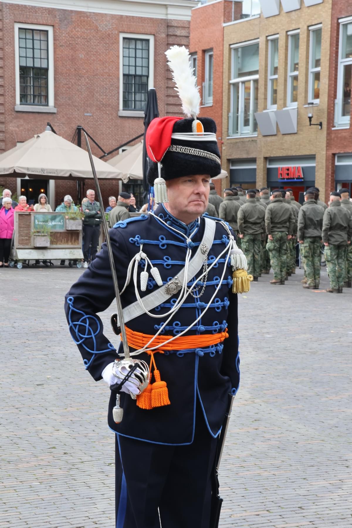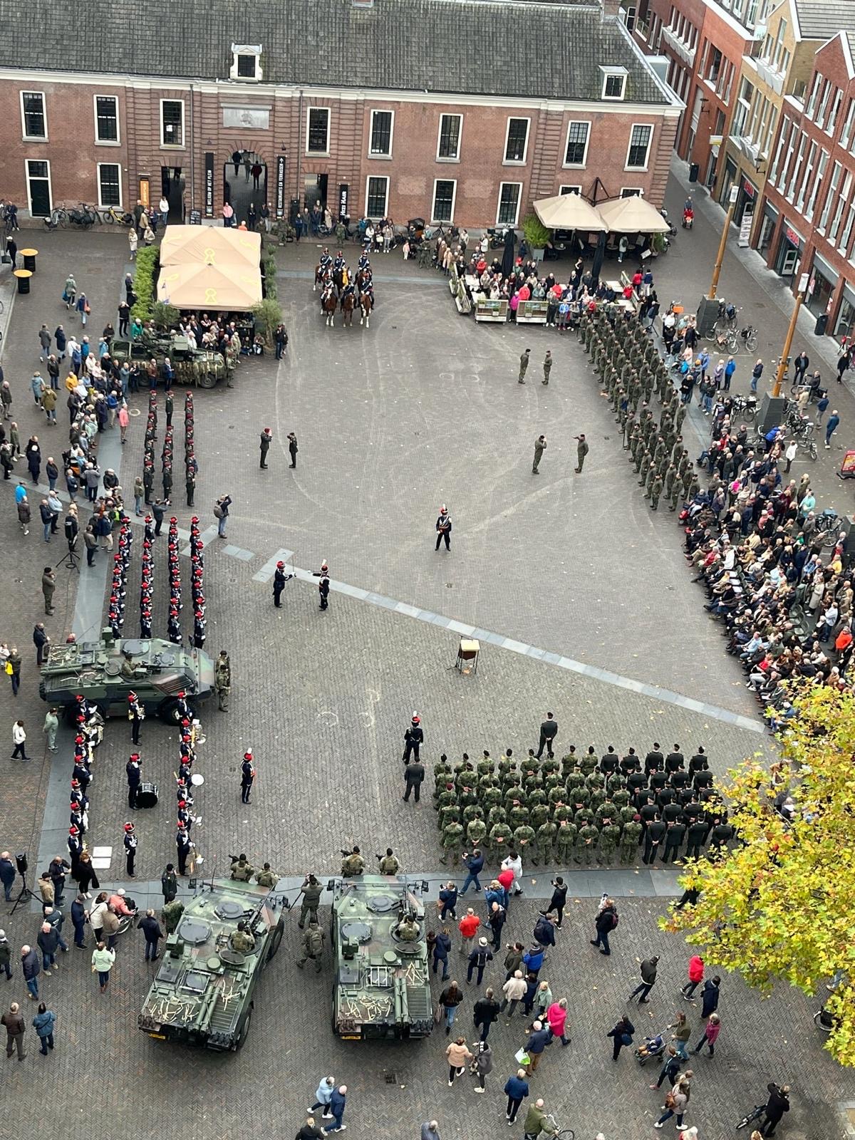 Na de ceremonie nam onze RC even de tijd om lkol Keldermans de Regimentslegpenning uit te reiken voor zijn inzet voor ons Regiment. Mooi te horen dat onze Boreelmars over het plein schalde, een geluid dat nog lang blijft hangen in de binnenstad.