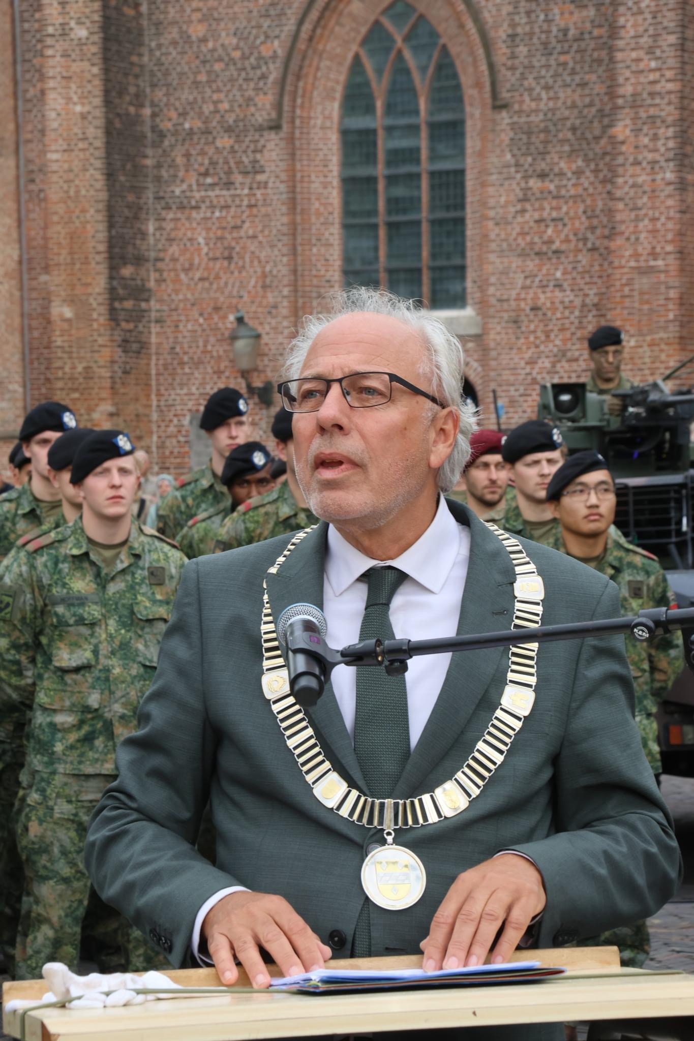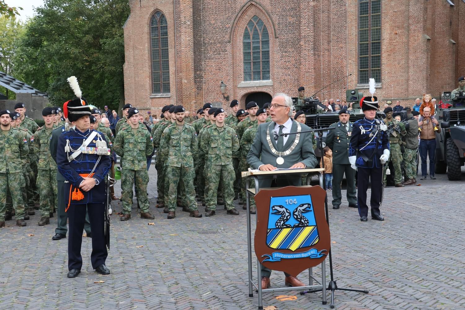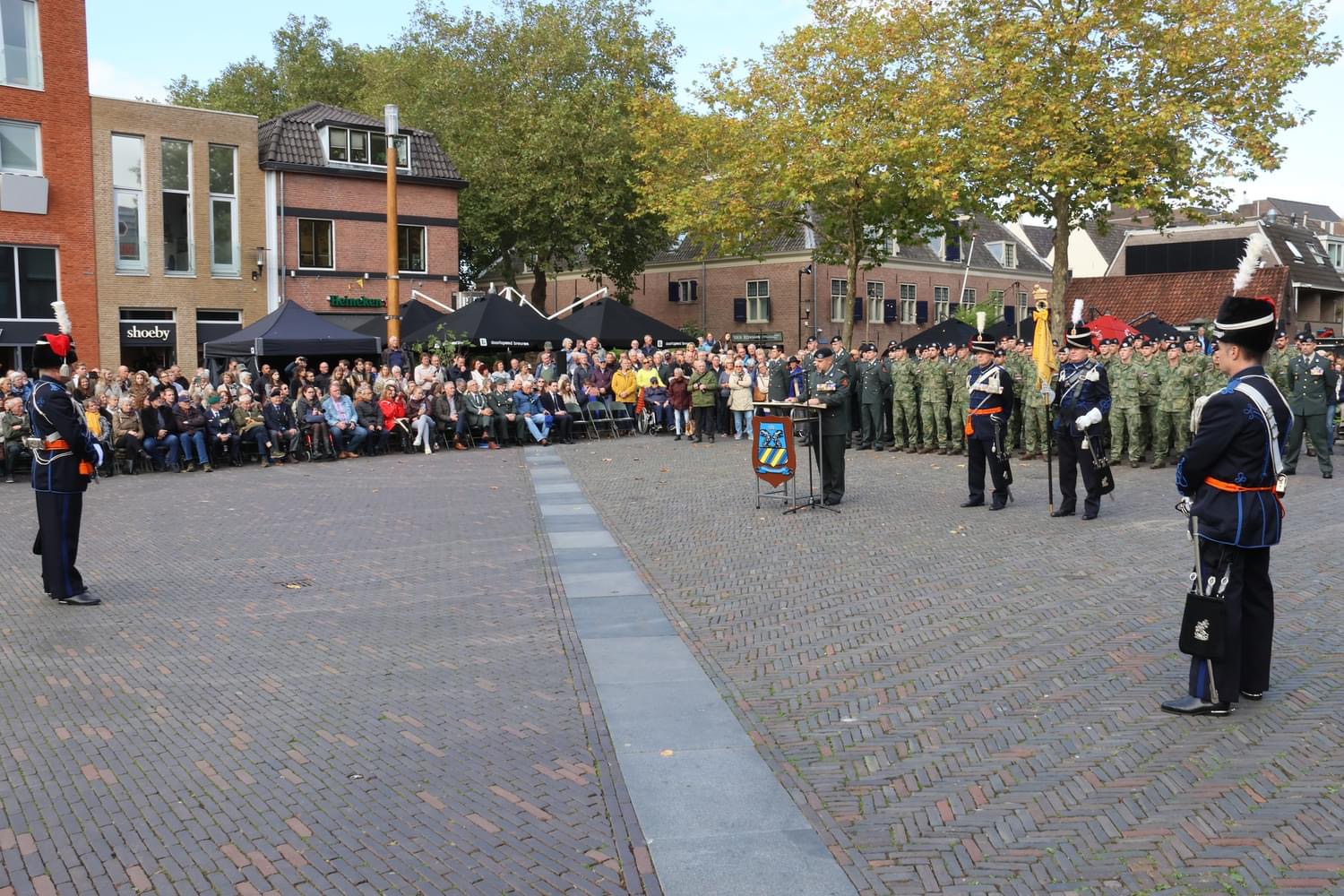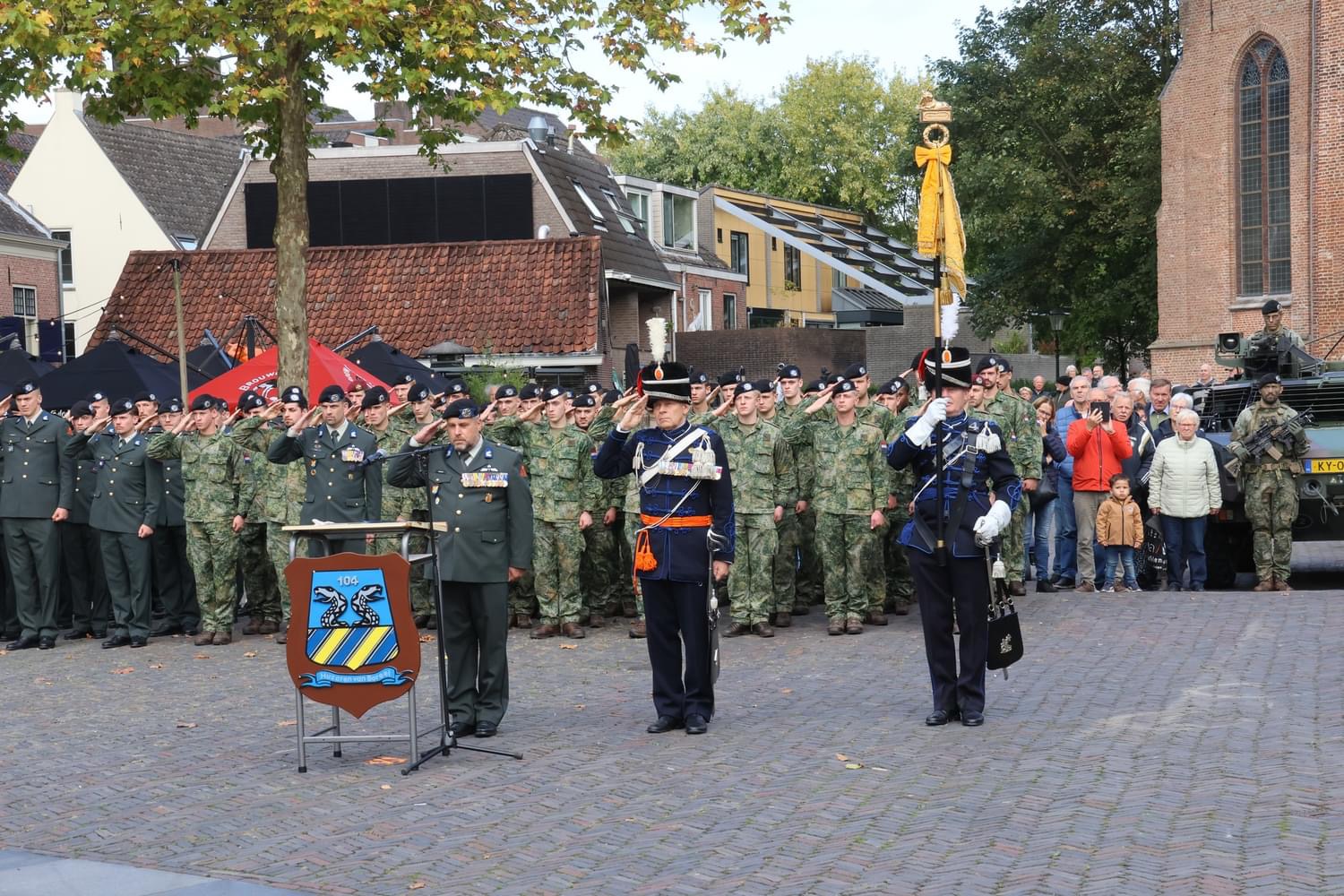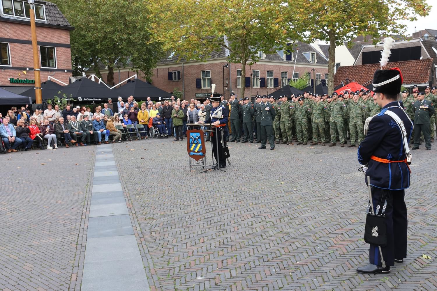 Na de ceremonie nam onze RC even de tijd om lkol Keldermans de Regimentslegpenning uit te reiken voor zijn inzet voor ons Regiment. Mooi te horen dat onze Boreelmars over het plein schalde, een geluid dat nog lang blijft hangen in de binnenstad.