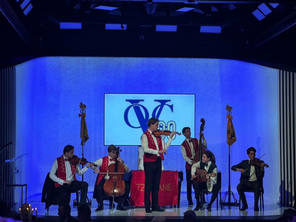 Na een welkomstwoord door de voorzitter V.O.C. Lgen Nico Tak werd onder genot van een borrel met een optreden van de Fanfare Bereden Wapens getoost op de vereniging en haar leden. Om 18.00 uur ving het Jubileumgaladiner aan en klonk zigeunermuziek van het Utrechtse studenten zigeunerorkest (sinds 1910) Tzigane.
