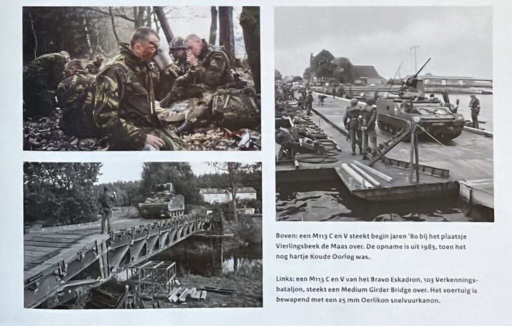 Over de overlevingskansen tijdens een groot gemechaniseerd gevecht maakten Van Schaik en zijn toenmalige collega’s zich geen enkele illusie. “We verwachtten dat we bij een confrontatie domweg niet zouden overleven. Een groot vijandelijk leger in opmars vertragen, is vragen om moeilijkheden. Er komt zoveel geweld op je af, ook al hadden we de middelen om een tik uit te delen.” De verkenningspelotons van ‘103’ moesten het pelotonsgevecht kunnen voeren. Hiervoor beschikten ze ieder over twee Leopards. vijf M113 C&V (Commando en Verkenningscarrier), een M113 A1 (tirailleur-bak), een M106 pantservoertuig met 81mm mortier. “Ons optreden was heel zelfstandig. We beschikten over een eigen keuken, een dito brandstoftransportmiddel en ook een munitie auto. Dat moest wel want ons divisievak was met honderden vierkante kilometers onmetelijk groot. Bij oefeningen waren we soms uren bezig met verplaatsen over de openbare weg.”