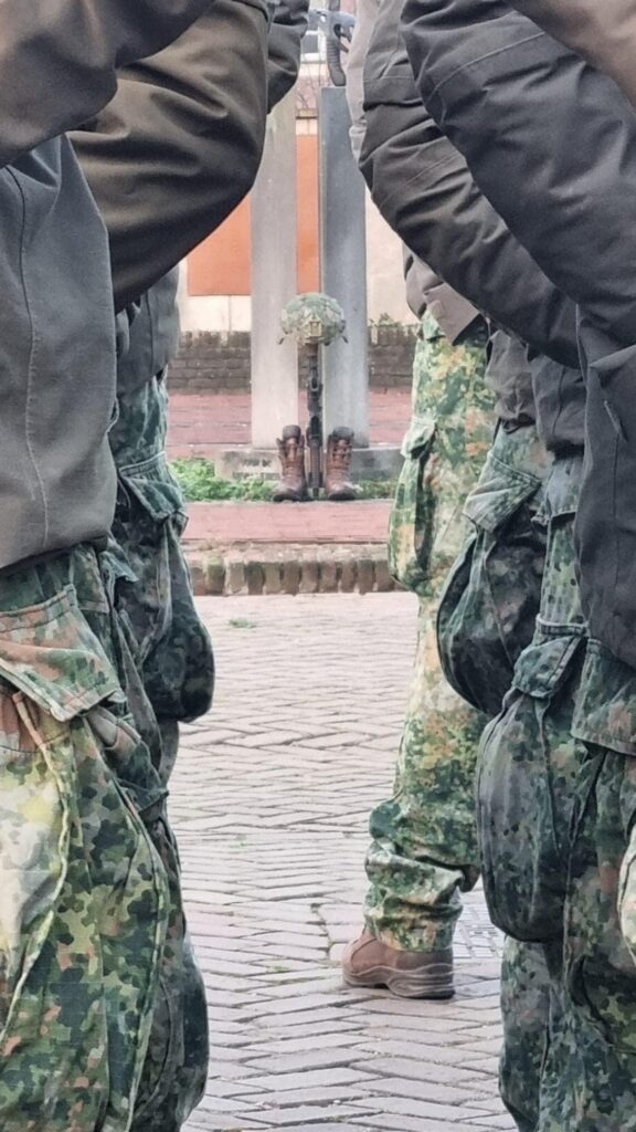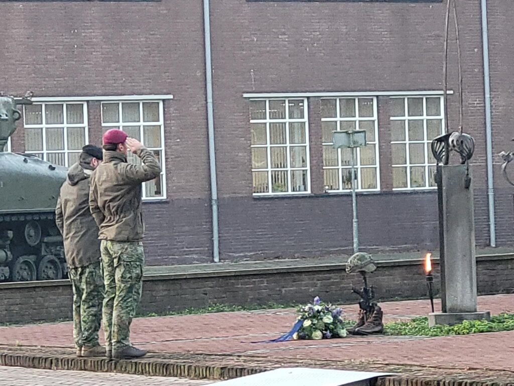 Met een kleine maar gepaste ceremonie werd eerbetoon bewezen aan zijn offer in Uruzgan in 2007. Goede toespraak van commandant Opleidingscompagnie Verkenning (OCV).