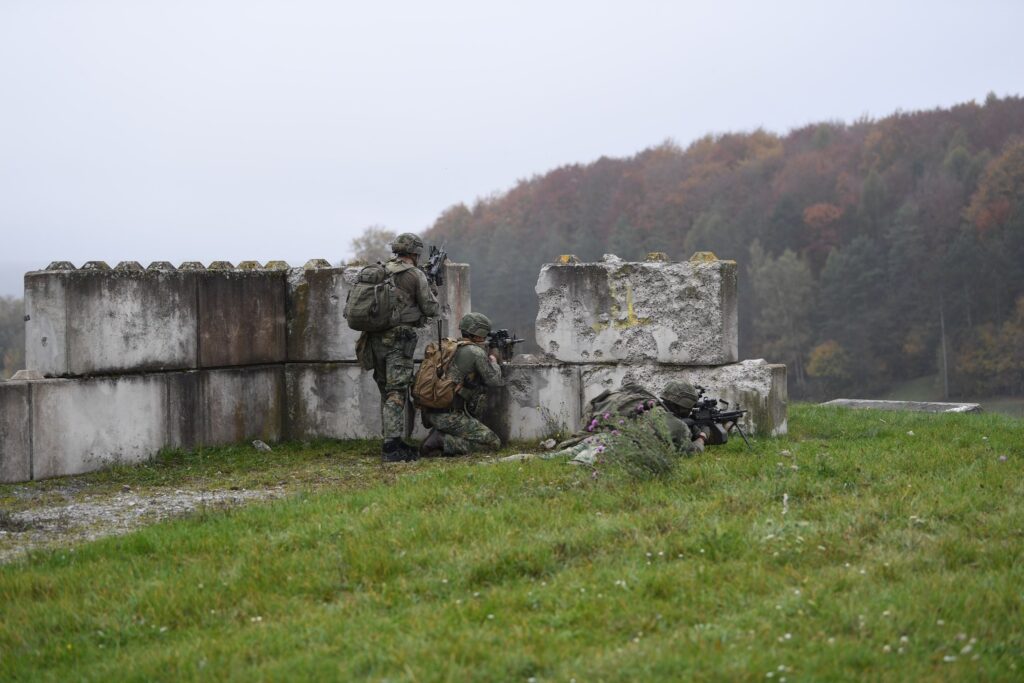 Tegelijkertijd opereert een ander deel van de eenheid in de omliggende gebieden, bereden en klaar voor verschillende verkenningsopdrachten. Het zware, glooiende terrein en de dichte bossen vormen een uitdagend contrast in vergelijking met Nederland.