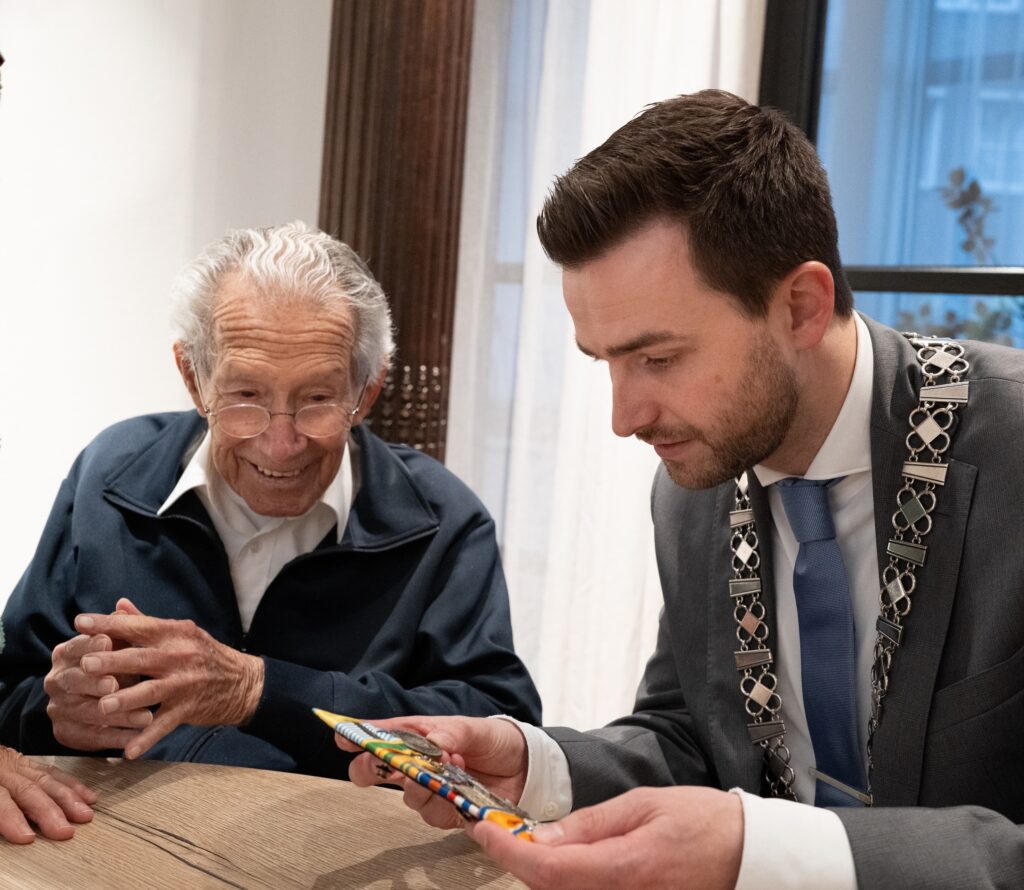 Niet omdat hij 100 werd of een huwelijksjubileum te vieren had, maar omdat hij veteraan is. Bij de herdenking van 80-jaar Market Garden afgelopen september viel zijn oog al op deze goedlachse meneer die uitgebreid gedecoreerd is. Hij vertelde hem ter plekke al dat hij tijdens de Tweede Wereldoorlog in een jappenkamp gevangen gezeten heeft, daarna voor de KNIL gevochten heeft in de Indonesische onafhankelijkheidsoorlog en vervolgens in 1950 nog op NAVO-missie is uitgezonden naar Korea. De burgemeester sprak met hem en zijn echtgenote af dat hij een keertje op bezoek zou komen om zijn verhaal te horen en zo geschiedde.