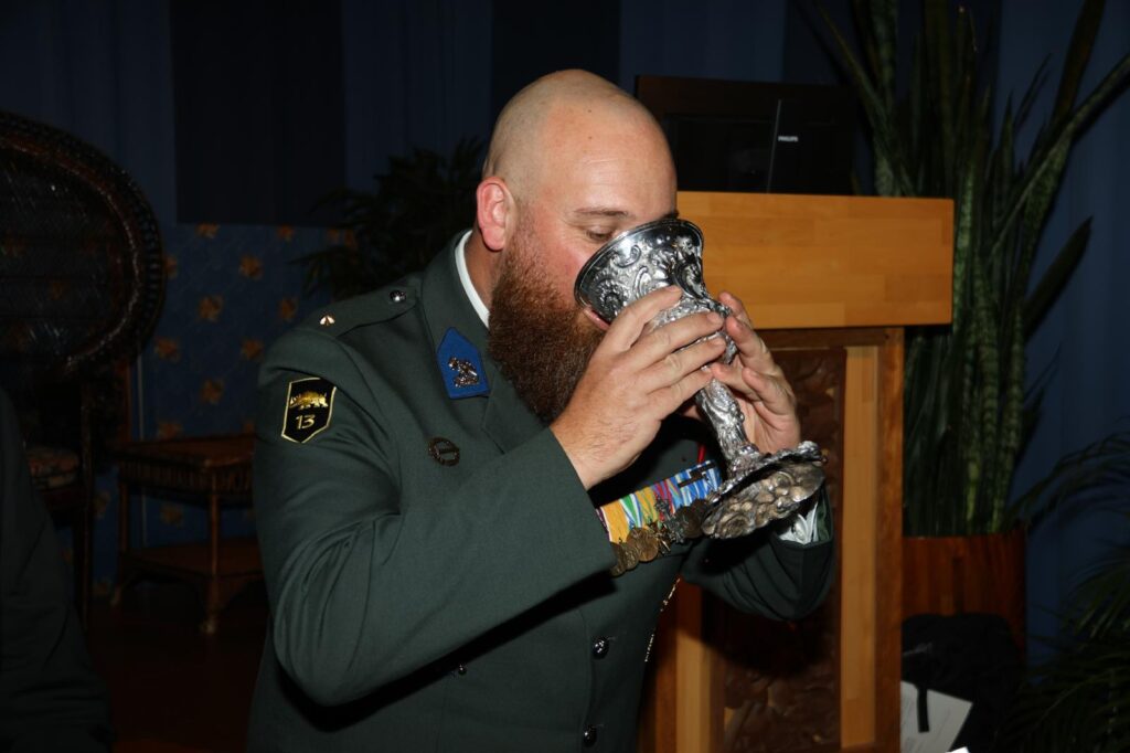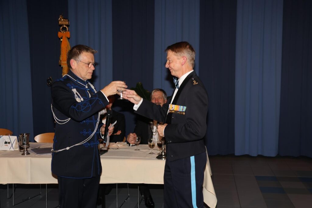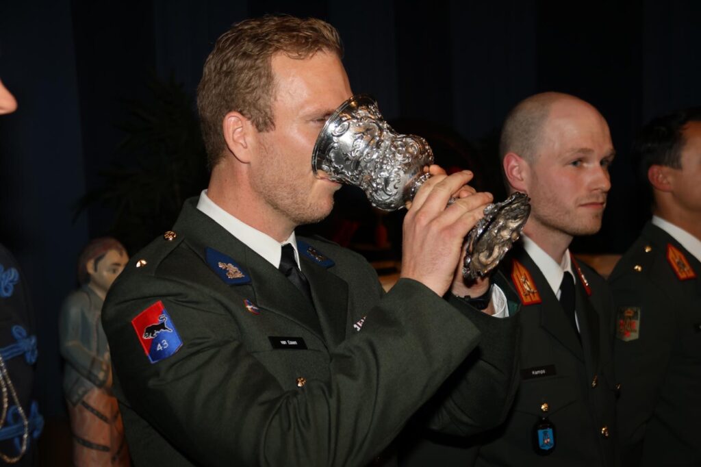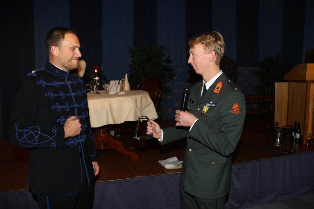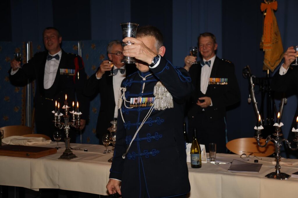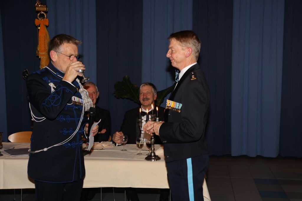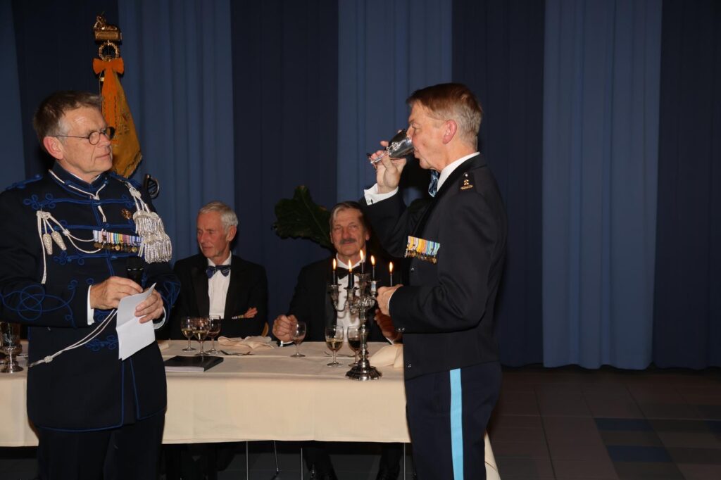 RC-RHPCA, kol Teunissen, had oud RC-RHPCA, Lkol bd Corstiaan de Haan bereid gevonden om zijn honneurs waar te nemen en op de samenwerking en gezondheid van beide regimenten een toast uit te brengen.Beide RC-en dronken volgens traditie uit de gezamenlijke beker om de verbonden tussen beide Regimenten te onderstrepen.
