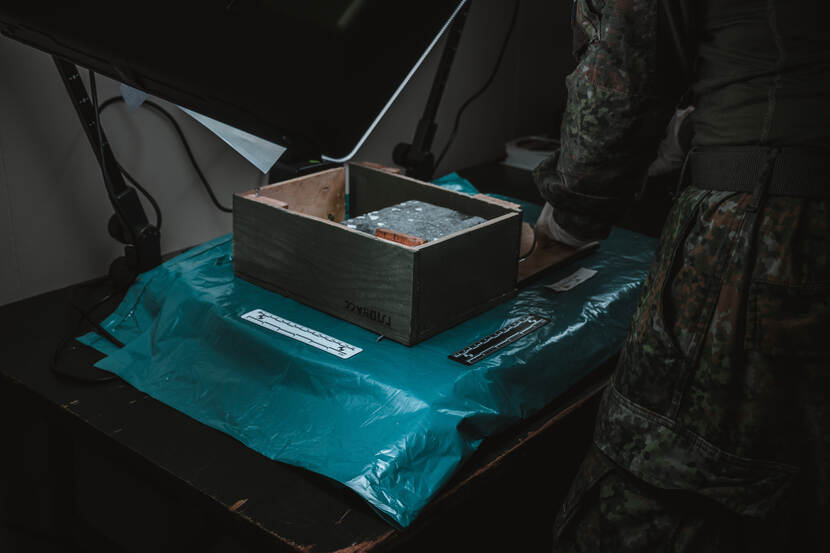 Na exploitatie belanden de gevonden spullen in het lab, die voor deze oefening is ingericht in een civiel gebouw. Hier worden de spullen grondig onderzocht en belangrijke informatie over de vijand verzameld.