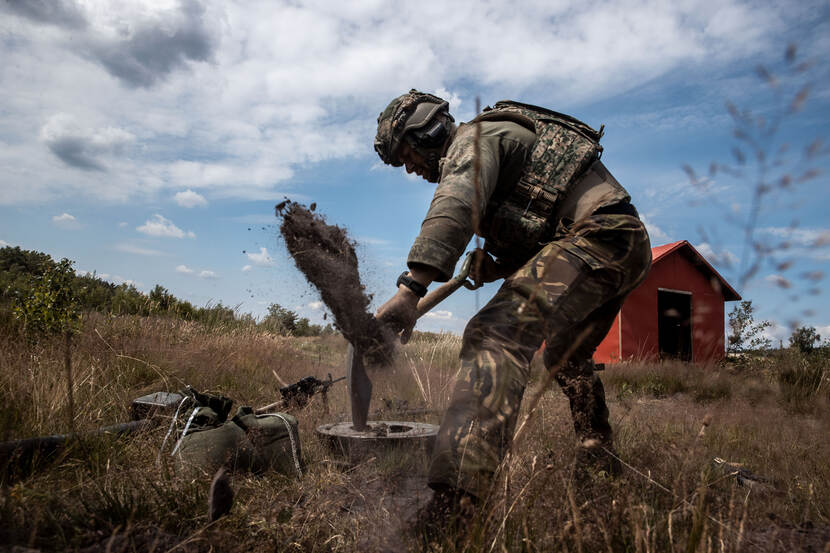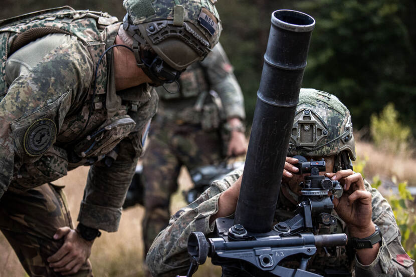 Het mortierpeloton van de Deltacompagnie 44 Pantserinfanteriebataljon Johan Willem Friso steunde de verkenners van 43 BVE waar mogelijk. Maar ze draaiden ook hun eigen programma op Bergen-Hohne. Volgens commandant sergeant Normen leverde de SOB veel leermomenten op. Zijn eenheid bestaat grotendeels uit militairen die pas kort in dienst zijn en de coronapandemie heeft het oefenprogramma geen goed gedaan. Hoog tijd dus om weer eens ‘bommen’ te gooien.