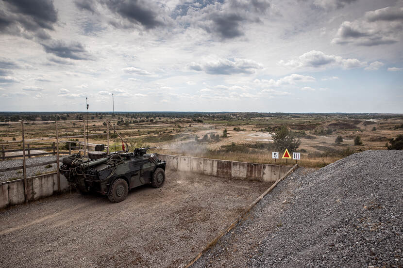 Het is op zich geen bijzondere oefening, schieten op Bergen-Hohne in Duitsland, oftewel de SOB. Er zijn genoeg militairen die de banen blindelings weten te vinden en dat geldt vanzelfsprekend ook voor de verkenners. Wel opmerkelijk: 43 Brigade Verkenningseskadron nodigde het mortierpeloton van 44 Pantserinfanteriebataljon uit ter ondersteuning.