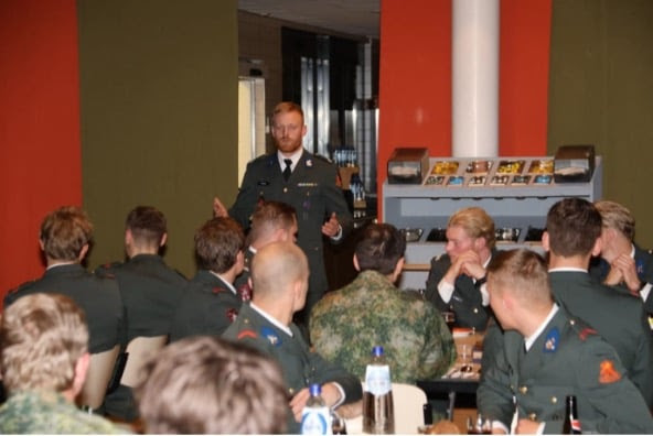 | Op donderdag 21 november werd het Diner de Corps Onderofficieren RHB gehouden, waarbij rond de 170 Regimentsgenoten naar Stroe zijn afgereisd. Een bijzondere avond omdat SKA-RA (de enige binnen de KL) Aooi Johan de Jongh zijn functie als Regimentsadjudant heeft overgedragen aan Aooi Auke Posthumus. |