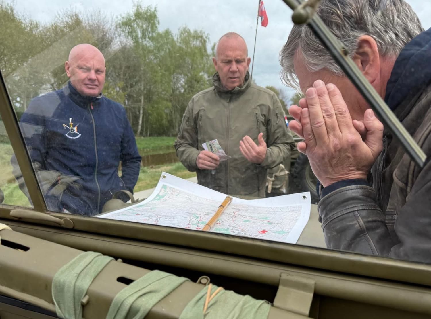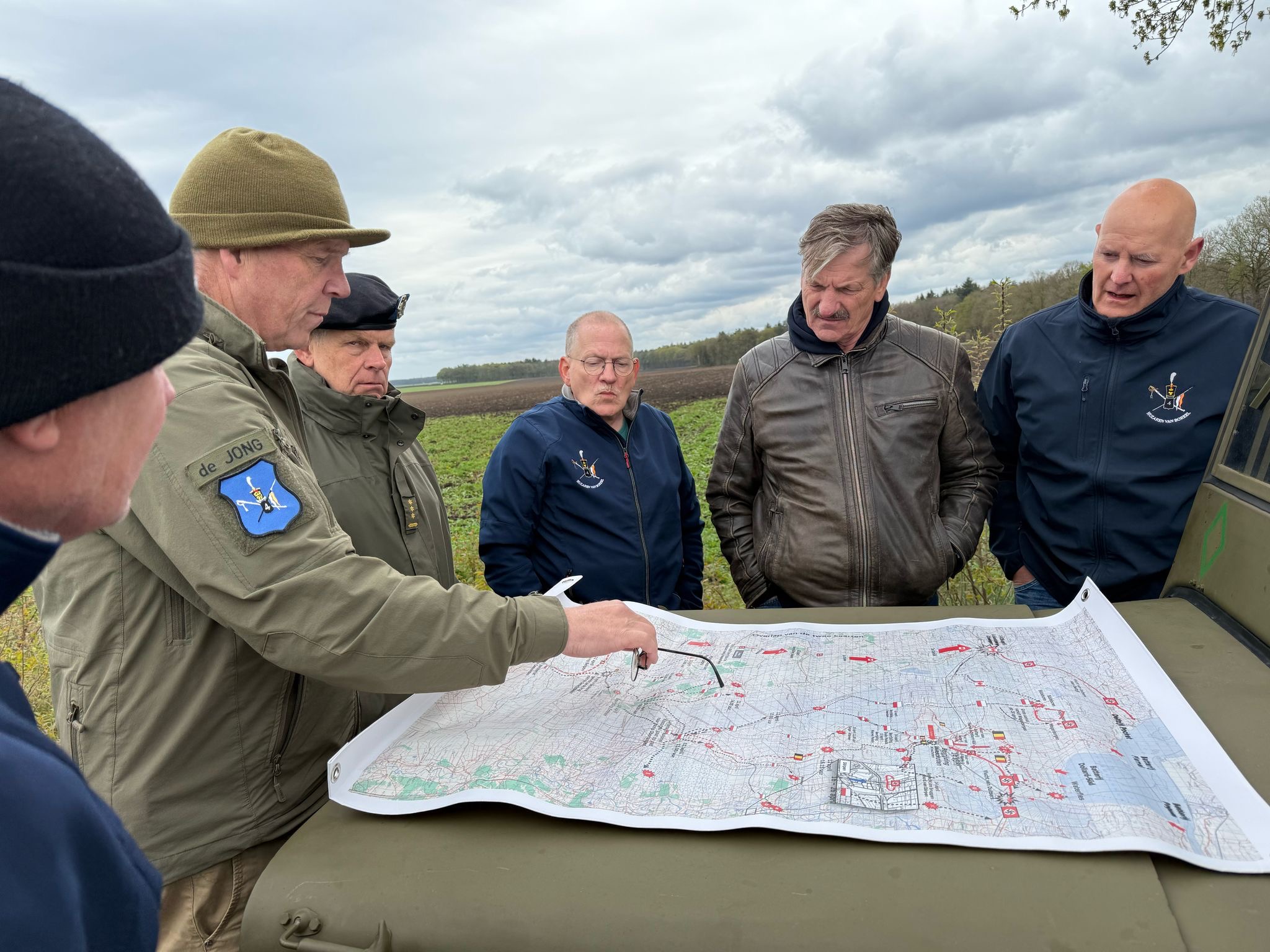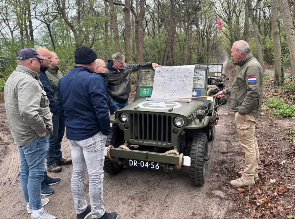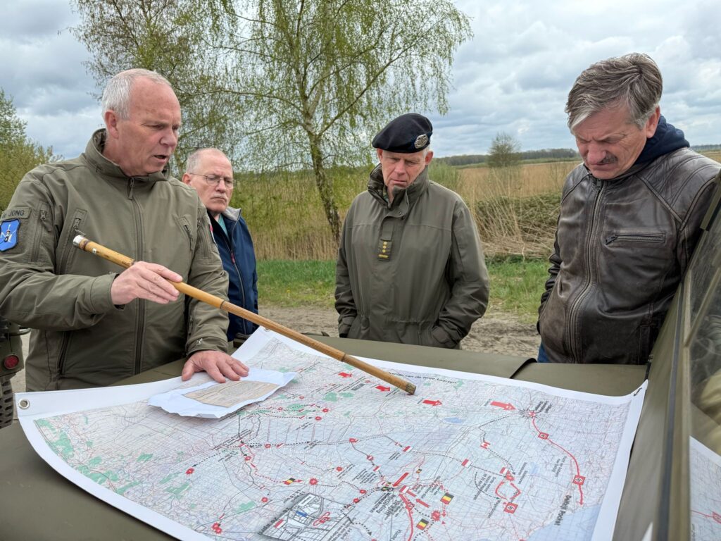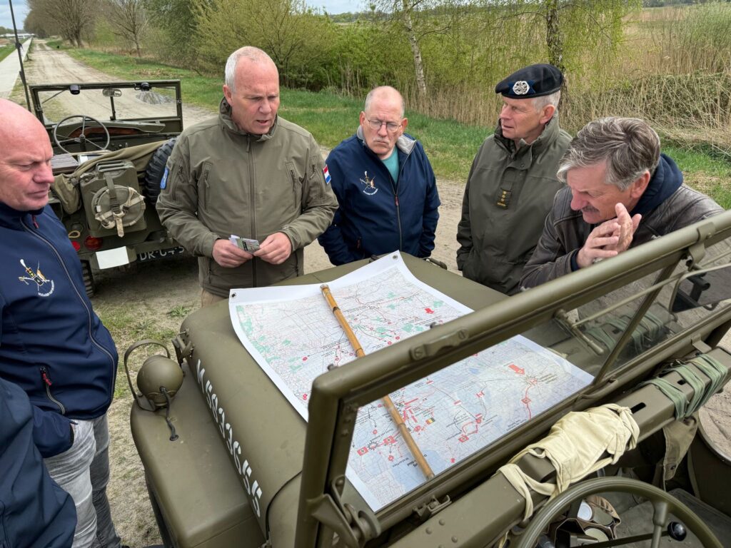 “Verkenningstocht met een Boreel Recce Squad operatie in Drenthe. Acties besproken van Franse parachutisten en Poolse verkenners in april en mei 1945.