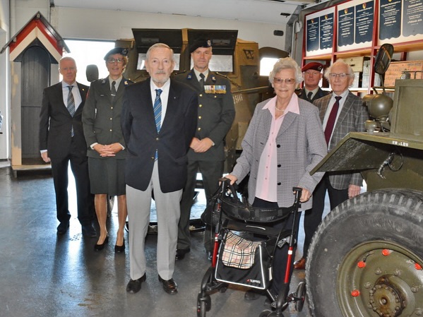 Zij kreeg deze bronzen legpenning – tot haar grote verrassing- uitgereikt wegens de enthousiaste en jarenlange steun aan de Indië-veteranen, de Vereniging Huzaren van Boreel en de redactie van de Verkenner. In de bijbehorende oorkonde roemde de kolonel haar werk als voorzitter van de reüniecommissie van de 2e Afd HvB, het secretariaat en het organiseren van reünies voor de Indie-eskadrons en het bemensen van de Toko Boreel op Veteranendag.