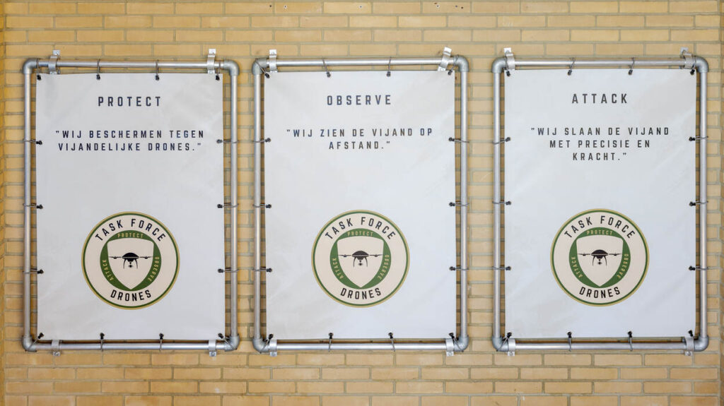 Vlak voor kerst maakt de taskforce de balans op. Prioriteit 1: het implementeren van (contra-)dronemiddelen binnen de landmacht voor extra gevechtskracht. Strijden in een gevechtszone zoals die nu in Oekraïne te zien is, geldt daarbij als uitgangspunt. “Een strook van verderf met enkel prikkeldraad, mijnenvelden en loopgraven, waarboven militairen een dronegevecht voeren”, vertelt de commandant. “Het grootste deel betreft small UAS: kleine drones. Naar schatting vocht Oekraïne in het afgelopen jaar met ruim 1 miljoen van dit soort drones in die zone. Mocht een grootschalig conflict uitbreken, moeten wij dit gevecht kunnen winnen.”