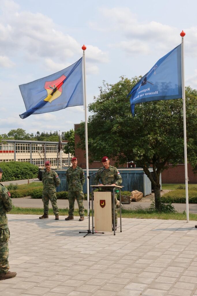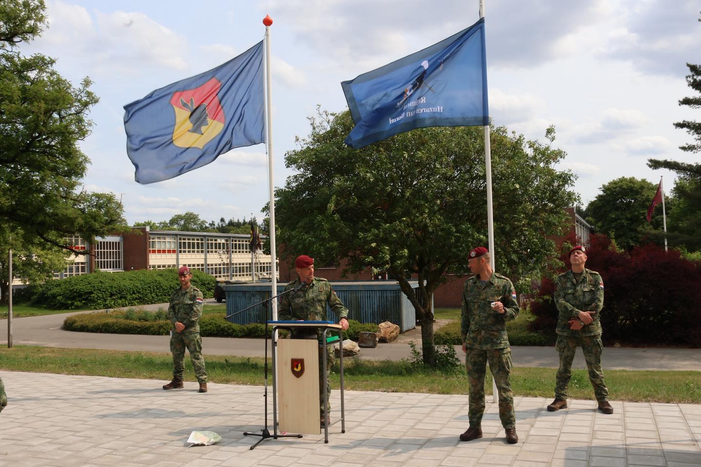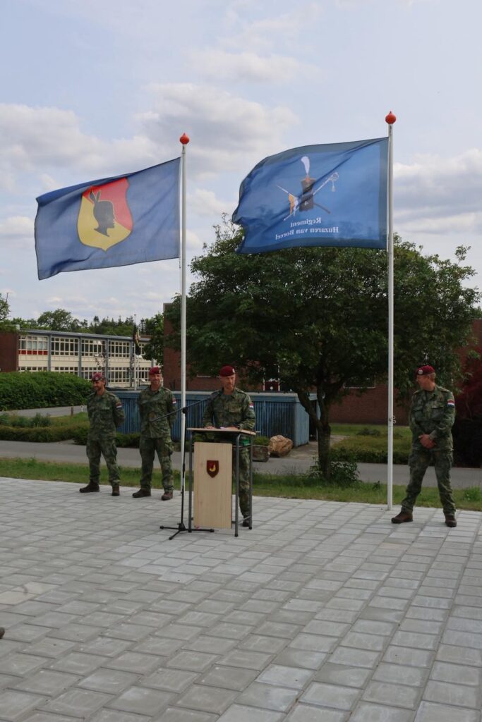 Vanmiddag, 3 juni 2025, heeft onze Regimentsadjudant, Aooi Auke Posthumus, zijn functie als Eskadronsadjudant van 11 Brigade Verkennings Eskadron, de stam, Indianen overgedragen aan Aooi Hilbert van der Worp.