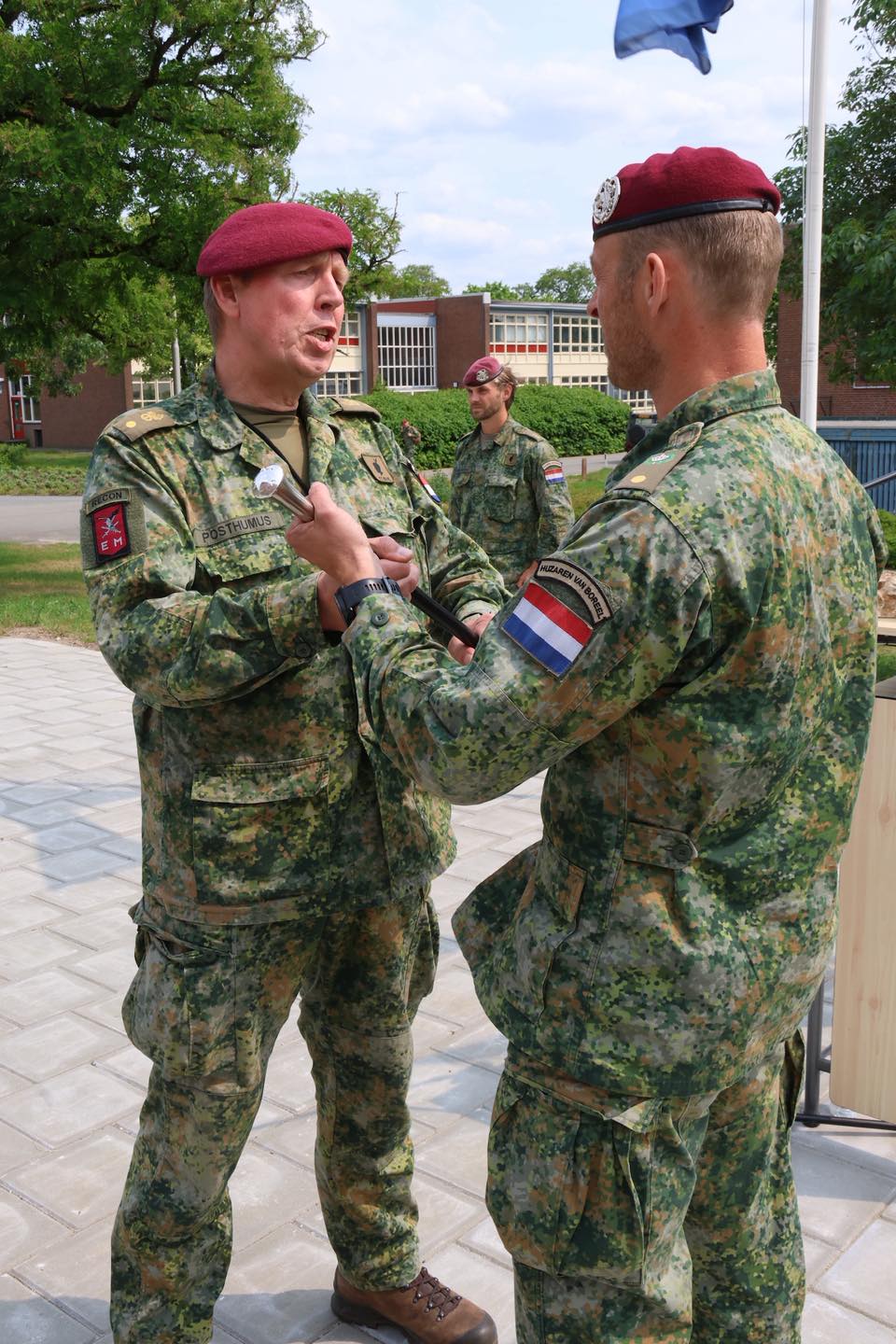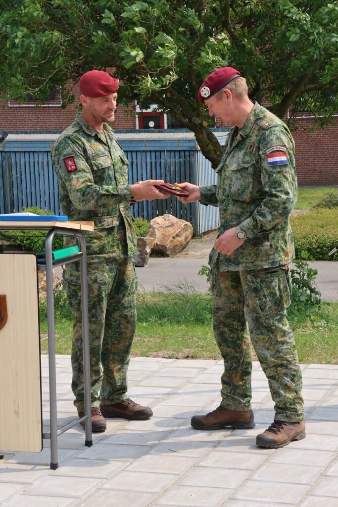 Auke was 5(!) jaar EA van het Eskadron en kreeg van commandant 11BVE, majoor Gerwin Ravenhorst, een straatnaambord met “Posthumusplein” waarmee de appélplaats van dit mooie eskadron omgedoopt is tot in de lengte van jaren tot het Posthumusplein.