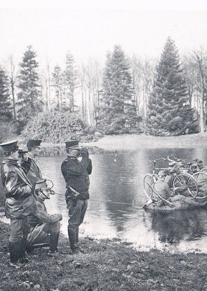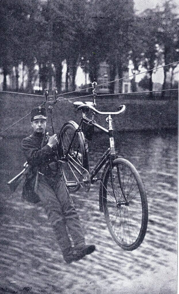 Begin 20e eeuw kreeg ook de Fongers fabriek in Groningen leveringsopdrachten voor rijwielen. In 1909 werden vervolgens twee compagnieën wielrijders ingevoerd. Aan hun taken werden pionierswerkzaamheden toegevoegd. Ook werden er gedurende langere tijd proeven genomen met ‘fietsoverzetmiddelen’ om de in Nederland vaak voorkomende waterwegen snel te kunnen oversteken. Een beproefde methode was het gebruik van staalkabels, waaraan een soldaat met zijn rijwiel kon worden gehangen, waarna beide met katrollen naar de overkant werden getrokken. Andere toepassingen waren drijfzakken of opvouwbare boten. Al met al tijdrovende en omslachtige methoden.