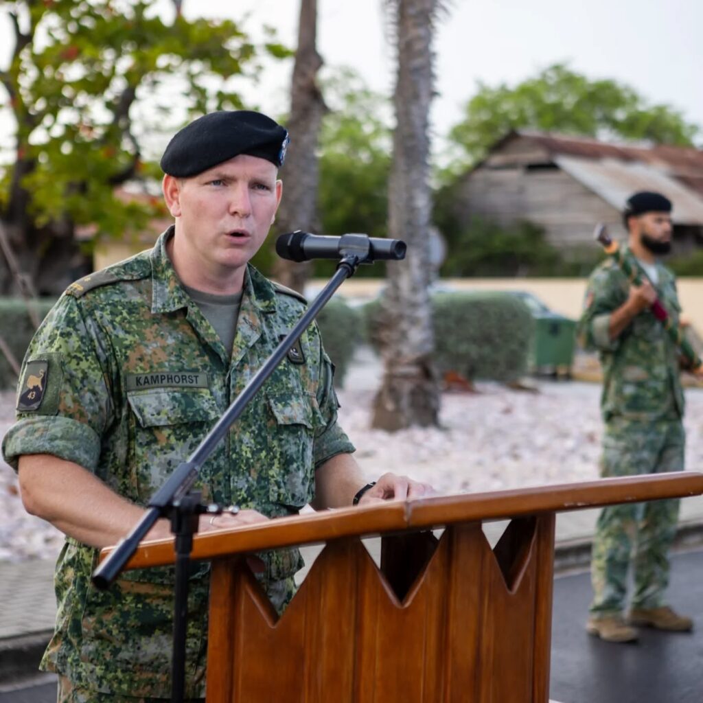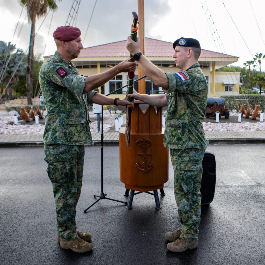 Tijdens een korte traditionele ceremonie droeg de Landmachtcompagnie van Defensie in het Caribisch gebied rotatie 48 haar taken over aan de volgende eenheid van rotatie 49.