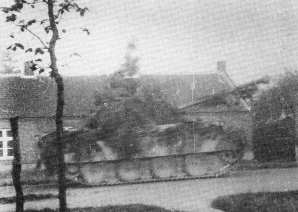 “By 9 a.m. the forward platoons of their two forward compagnies had got as far as Schans. Not so the supporting platoons. They had been pinned down in the open short of Schans by enemy’s fire from beyond the canal, which was now dominating the battlefield. Seeing the infantry plight, no. 1 squadron commander ordered one of his tank troops to make its way up to Schans regardless of mines. The troop managed to break throught the minefield, only to have all four of its tanks knocked out by AT gun-fire.”