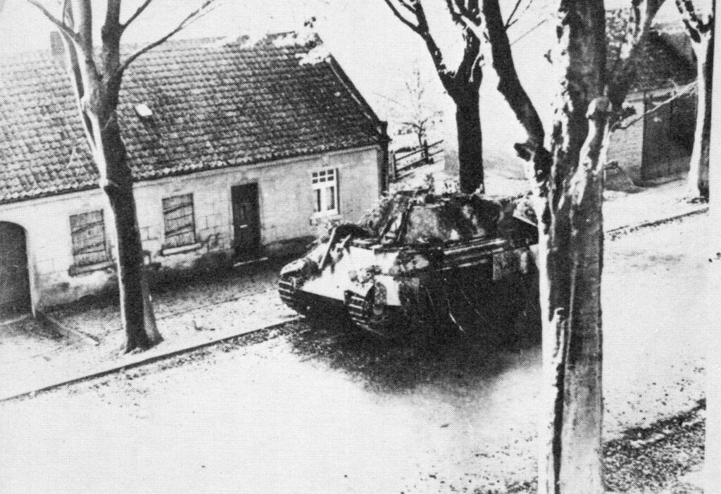 “Meijel itself was in an indescribable mess. Every house in the village itself and every farm nearby was flat. Burnt-out tanks and half-tracks, American and German, littering the dreary peat-bog, gave silent testimony to the tough fight put by the 7th U.S. Amoured Division. For the next three days the H.L.I and the R.S.F. were to be busy clearing roads through the chaos of rubble, craters, felled trees and mines of every sort sown in incredible numbers.”