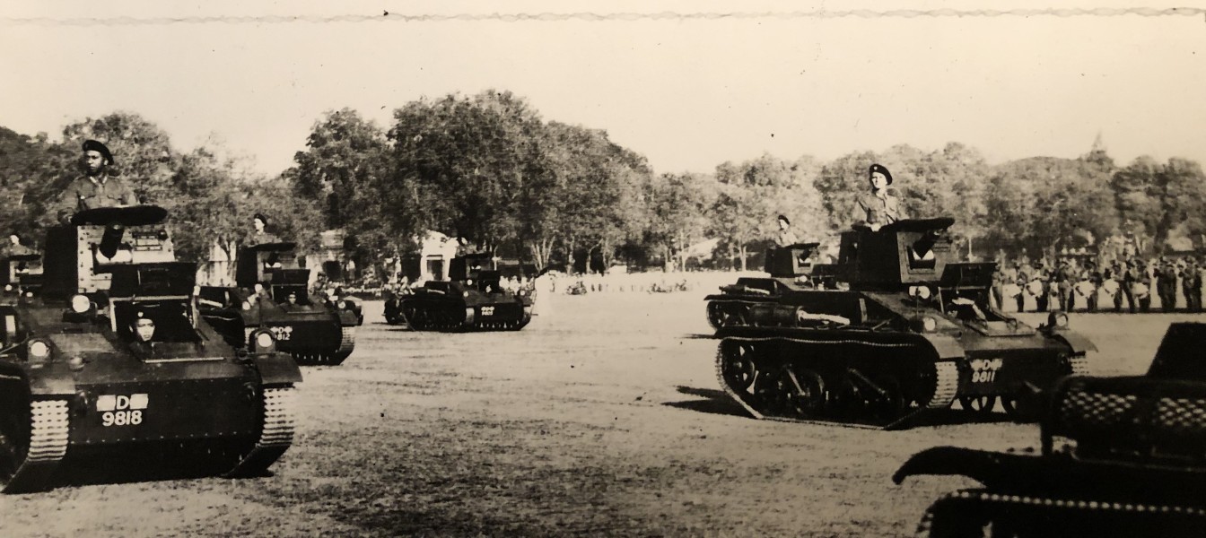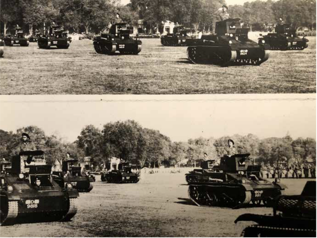 Intussen waren in Indië op zes van de zeven zelfstandige eskadron gemotoriseerd en voorzien van pantserwagens. Alle geleverde lichte tanks werden niet bij deze zelfstandige eskadrons ingedeeld, maar op drie na in één eenheid geplaatst, die ‘Mobiele Eenheid’ werd genoemd[8]. De Mobiele Eenheid werd niet ingedeeld bij een divisie, maar stond als strategische reserve direct onder bevel van de Chef Generale Staf (CGS). De eenheid was vreemd genoeg ingedeeld bij de infanterie. De eenheid bestond uit een bataljonsstaf, een compagnie lichte tanks, een peloton pantserauto’s (pau’s), een compagnie infanterie op overvalauto’s een sectie AT-geschut en een paar kleinere ondersteunende eenheden. Vlak voor de Japanse invasie kwamen de lichte Marmon-Herrington tanks aan en 7 hiervan werden ook ingedeeld bij de ‘Mobiele Eenheid’. De compagnie vechtwagens bestond hierna uit een stafpeloton van 3 tanks, 2 peloton van elk 7 VCL tanks en een Marmon-Herrington peloton van 7 tanks. Met deze Marmon-Herrington tanks kon niet meer worden getraind, want de Japanse invasie stond voor de deur. Op Koninginnedag 1941 was er overigens nog met het hele tankbataljon nog een parade gehouden op het Waterlooplein van Batavia.