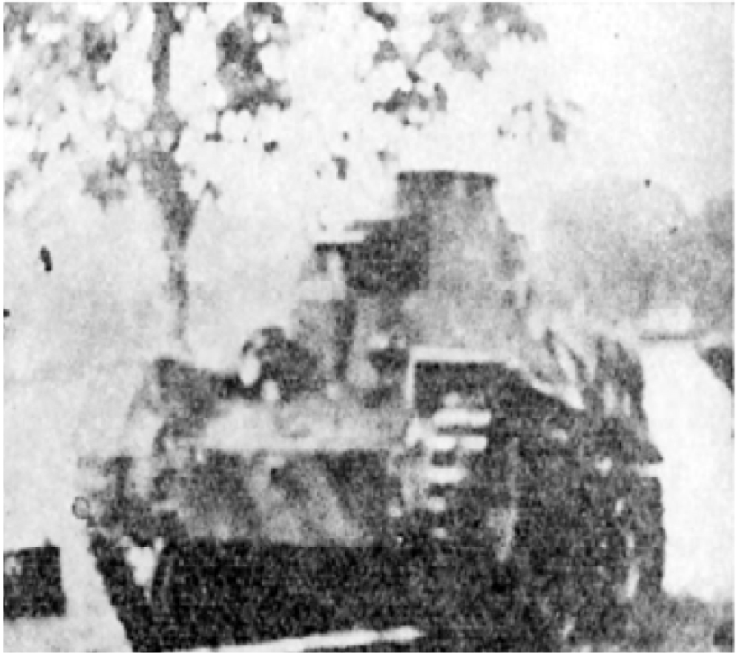 Figuur: een Japanse foto van één van de KNIL tanks die het vliegveld aanviel